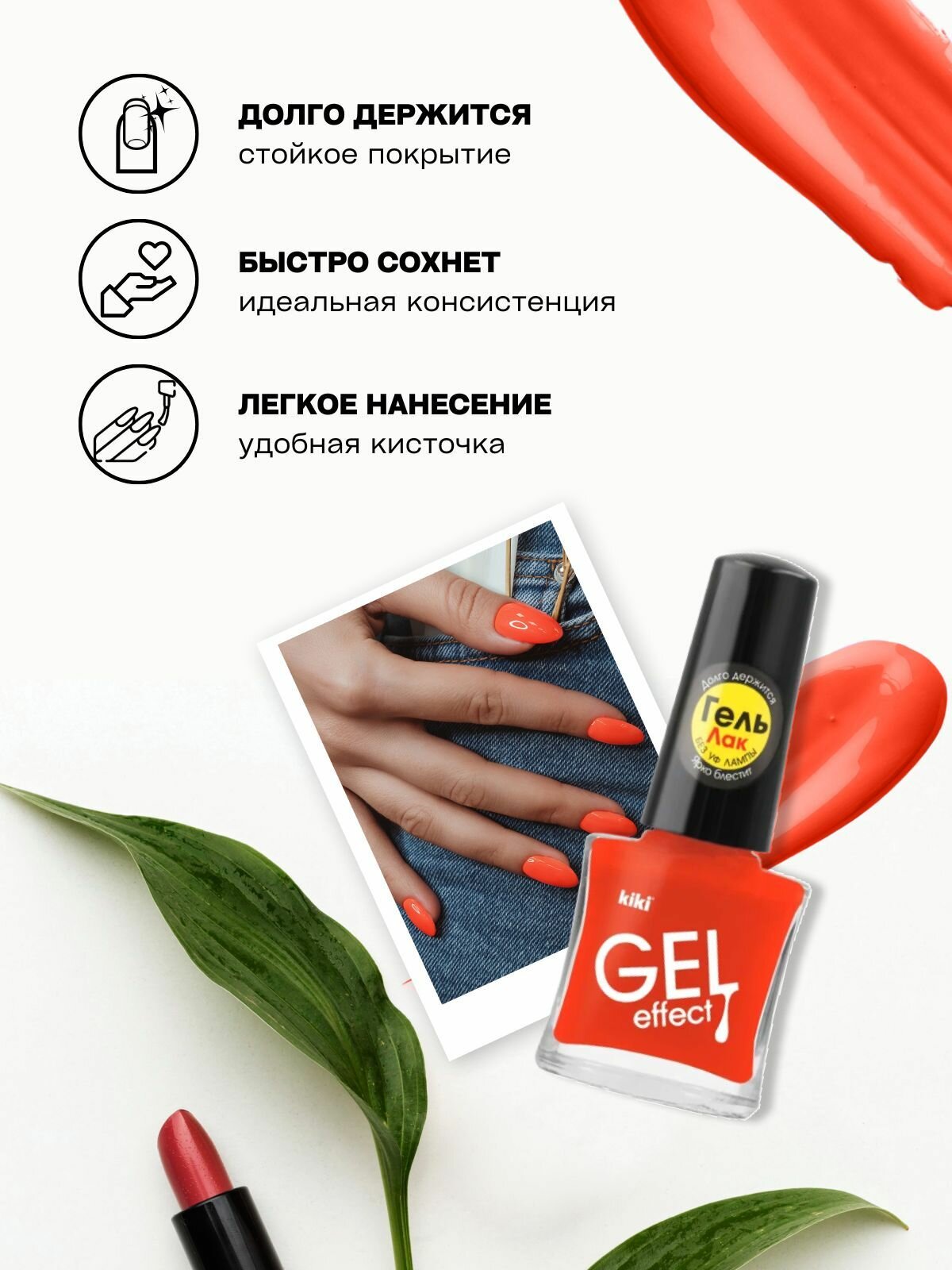 Отзывы на Лак для ногтей kiki Gel Effect тон 39 ярко оранжевый, с гелевым эффектом без уф-лампы, цветной глянцевый маникюр и педикюр, кики, 6 мл
