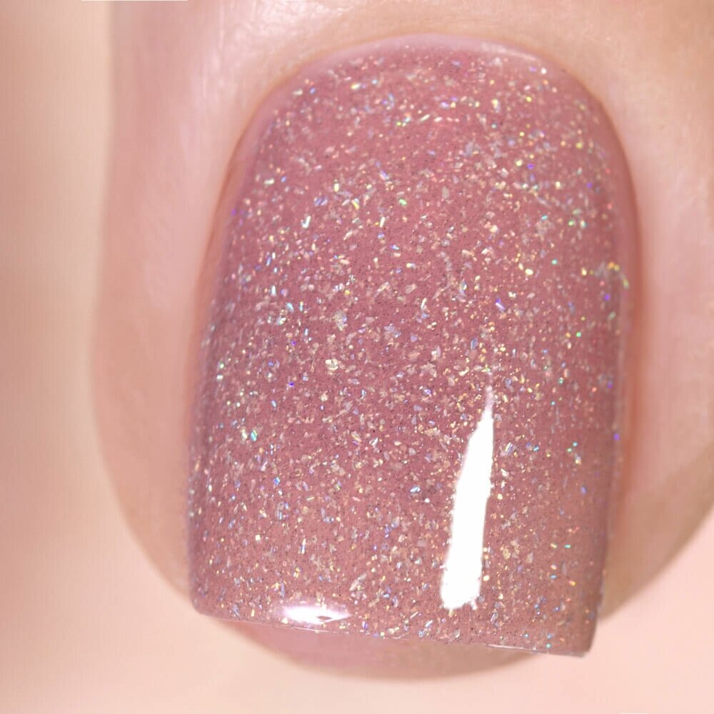 Лак для ногтей Укрепляющий Ты-Нежность, бежевый с голографическим глиттером, 11 мл