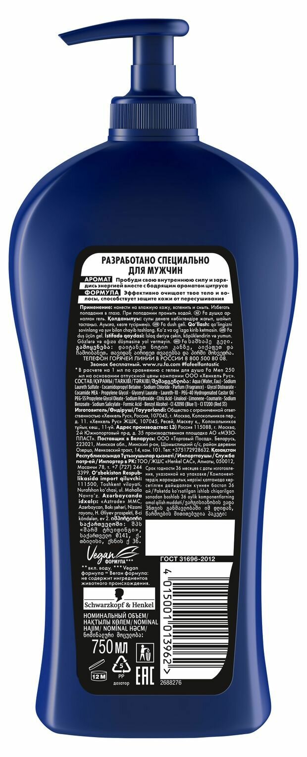 Гель для душа Fa Men Спорт 750 мл гель/для душа/мужской/для волос информация: