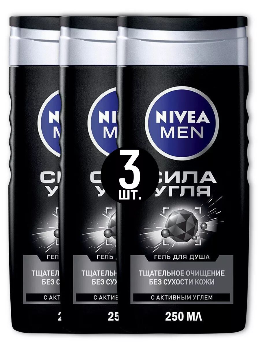 10 цен на Гель для душа мужской NIVEA Сила угля, 250 мл - 3 шт.