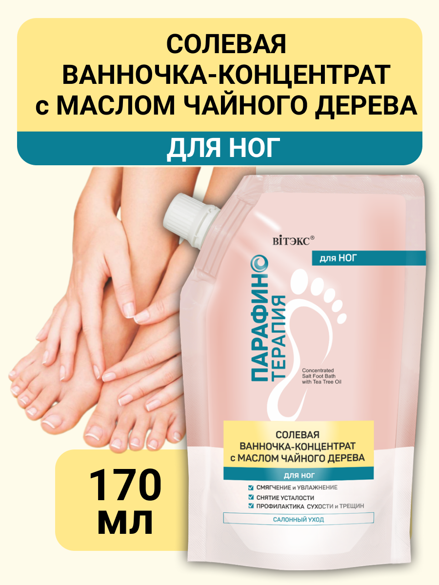 Отзывы на Vitex Парафинотерапия Солевая ванночка-концентрат с маслом чайного дерева для ног 170 мл 1 шт