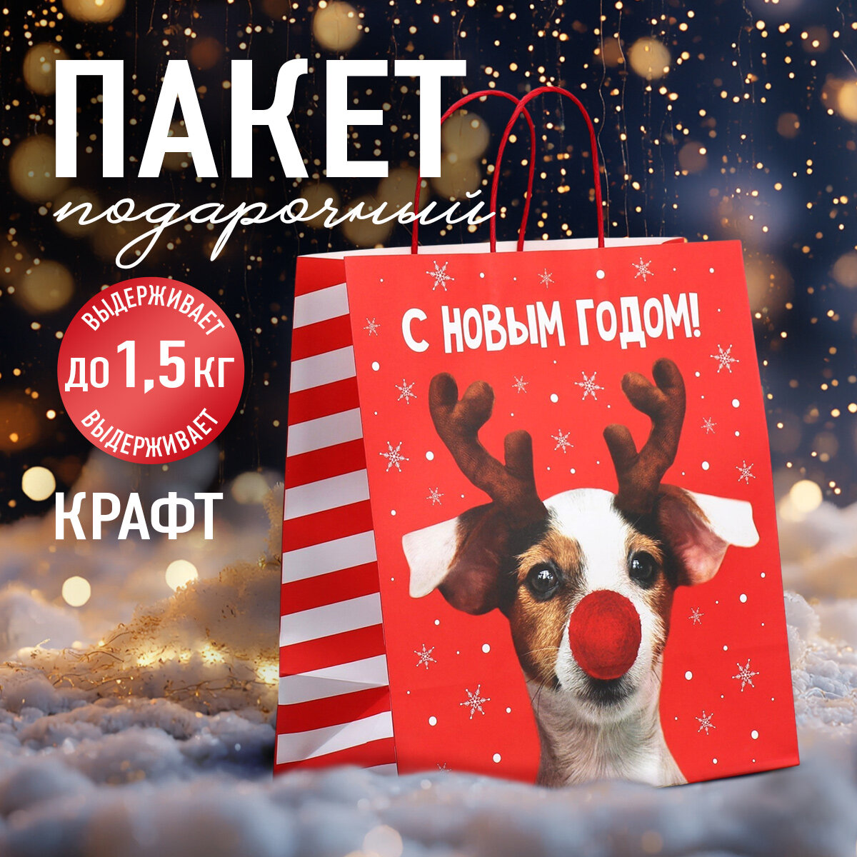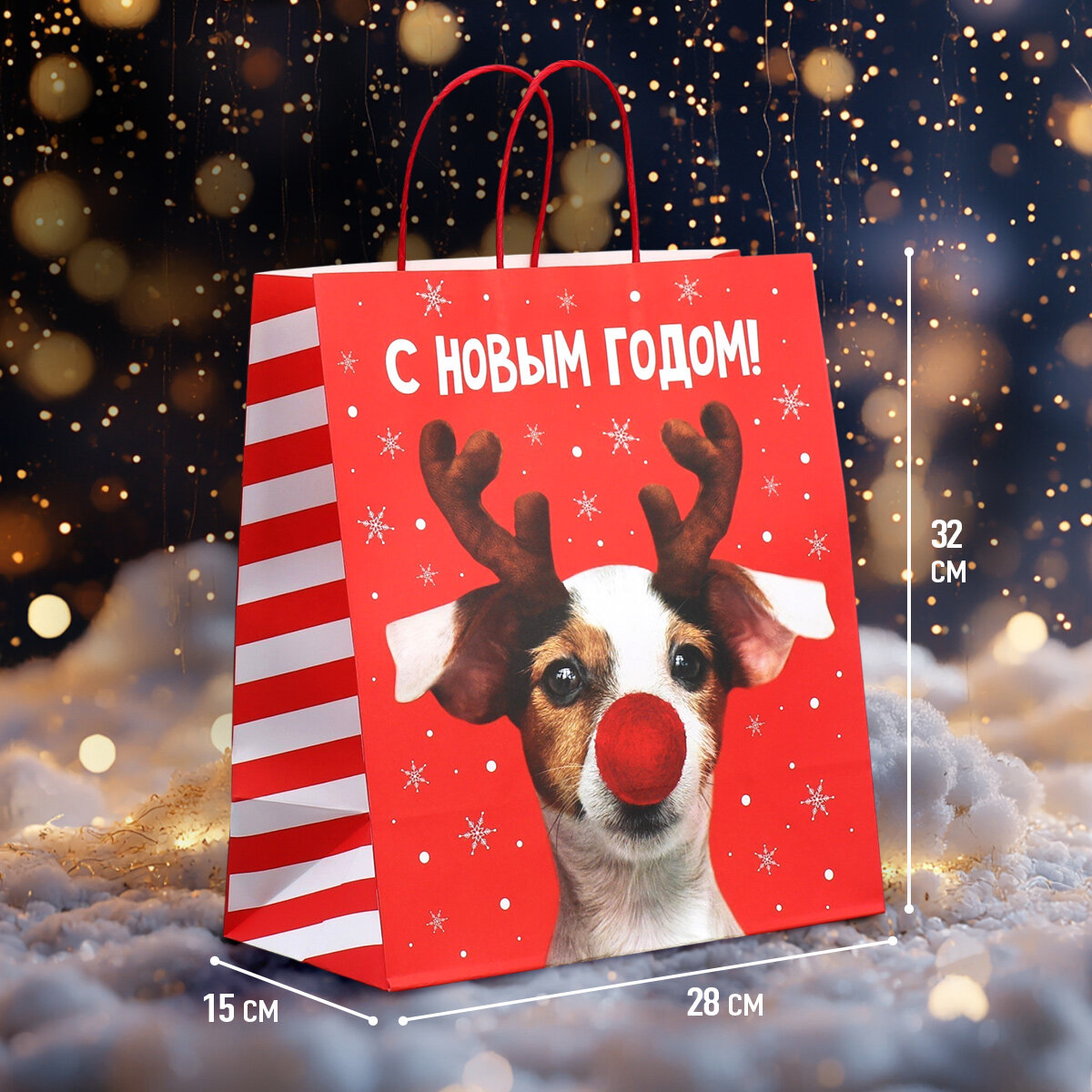 Отзывы на Пакет подарочный крафтовый, «Олень ты», 28 х 32 х 15 см, красный, для упаковки подарка на Новый год