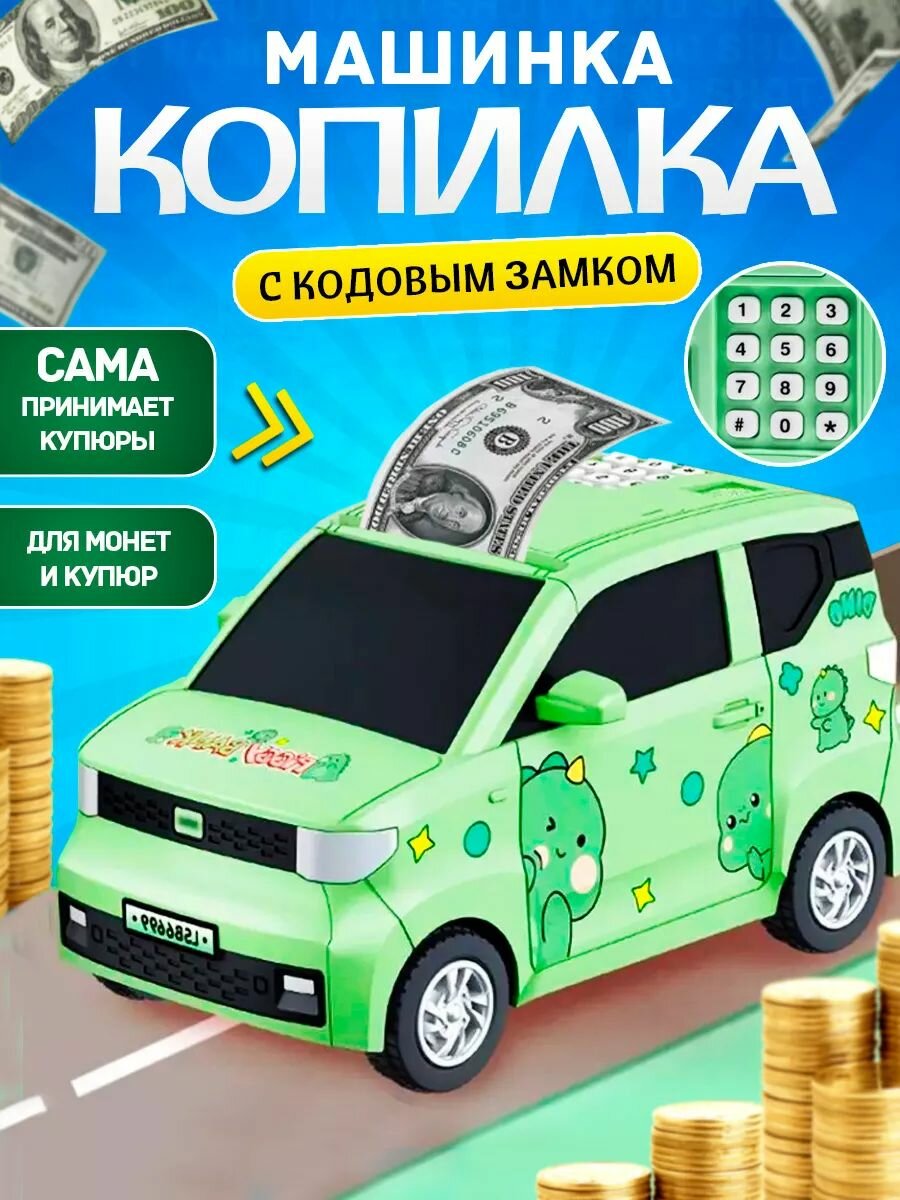 10 цен на Копилка-машинка с кодовым замком для денег и монет, зеленая