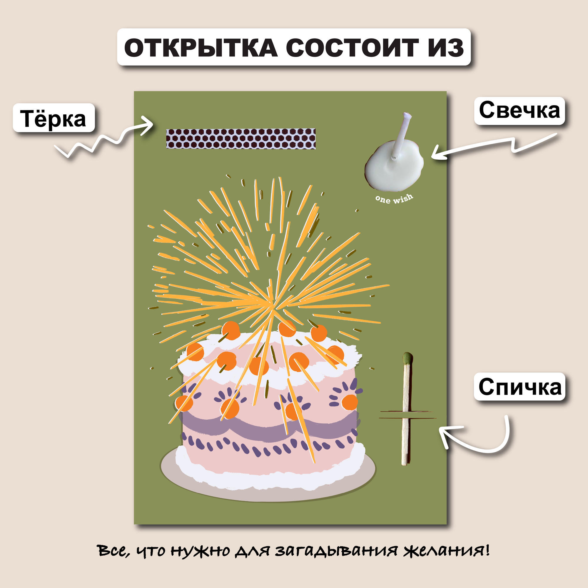 Открытка свечка "One wish", 10х15 см открытка с днем рождения 370 ₽