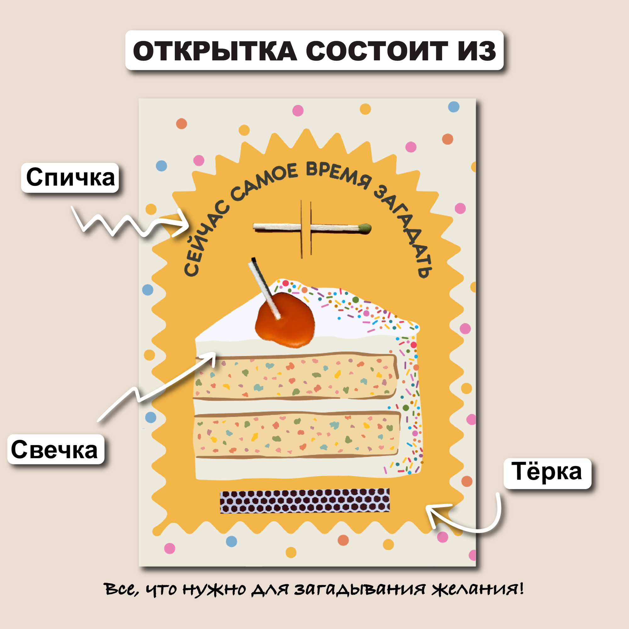 Отзывы на Открытка свечка "Сейчас самое время", 14,8х10,5 см (А6), стильная открытка на день рождения, торт