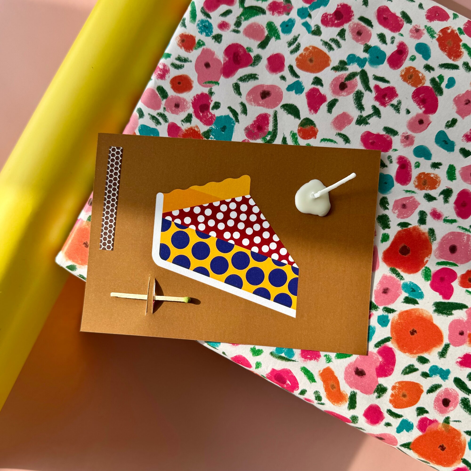 Открытка свечка "Торт", от Вьюнчик, 14,8х10,5 см (А6), стильная поздравительная открытка на день рождения информация: