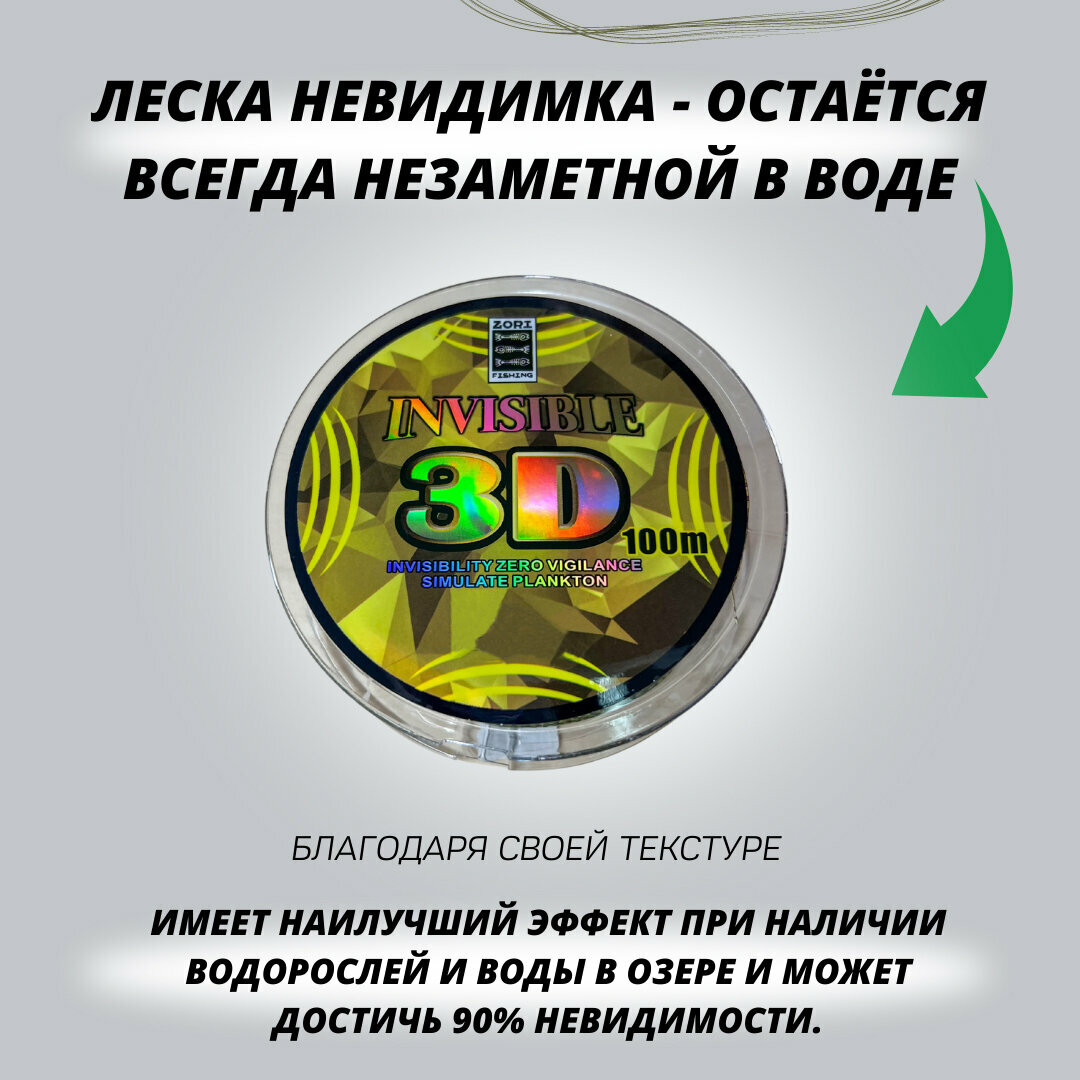 Леска Камуфляжная Невидимая 3D Zori-Fish 100м. 0.16мм 5.2кг / Леска рыболовная 375 ₽