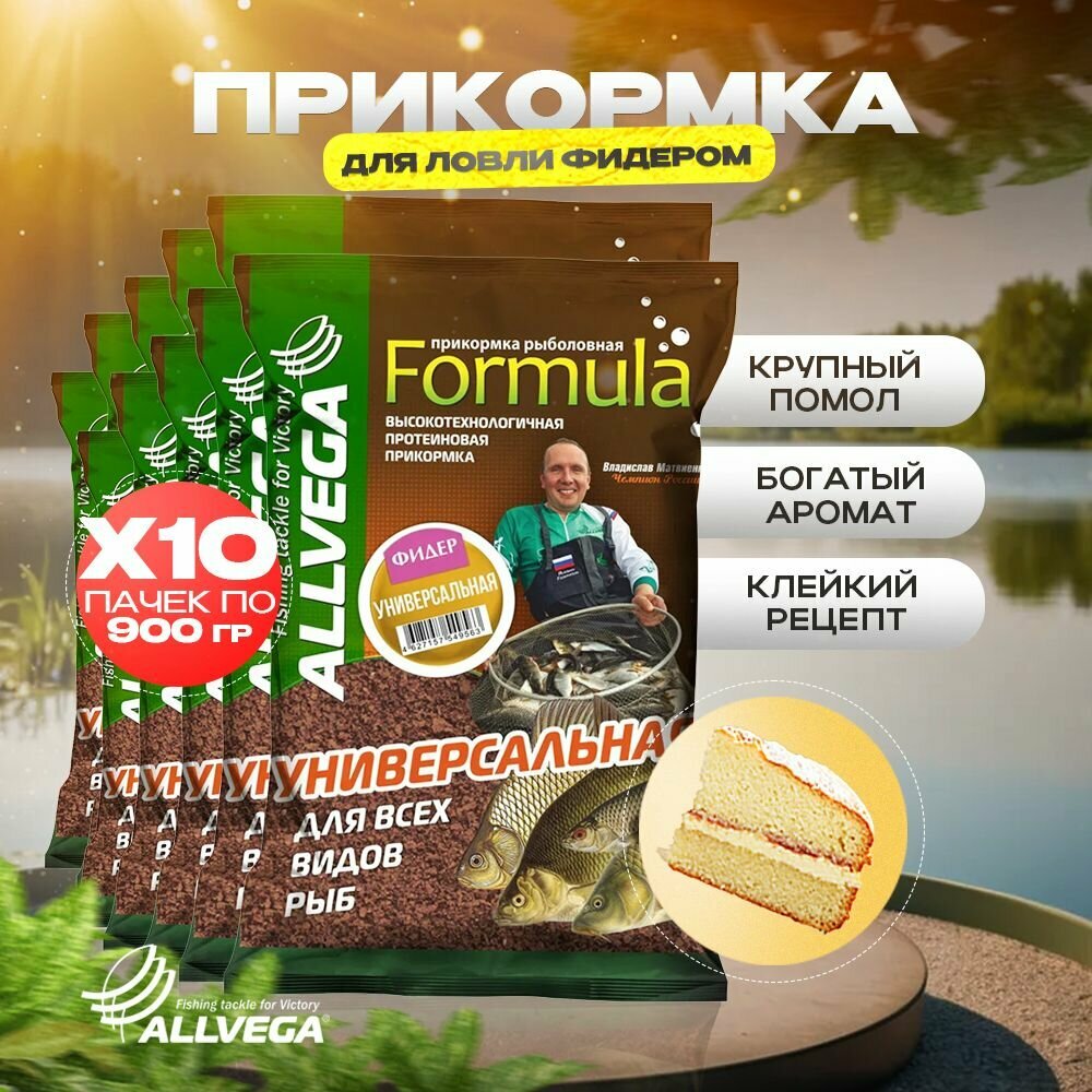 Прикормка для рыбалки ALLVEGA Formula универсальная фидер 10 пачек по 0.9 кг информация: