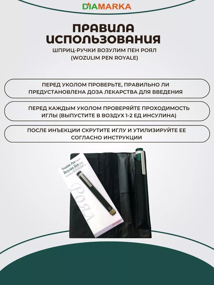 10 цен на Шприц-ручка для инсулина многоразовая Wozulim Pen Royale (Возулим Пен Роял), инъектор для уколов медицинский, 3 мл, шаг 1 ед