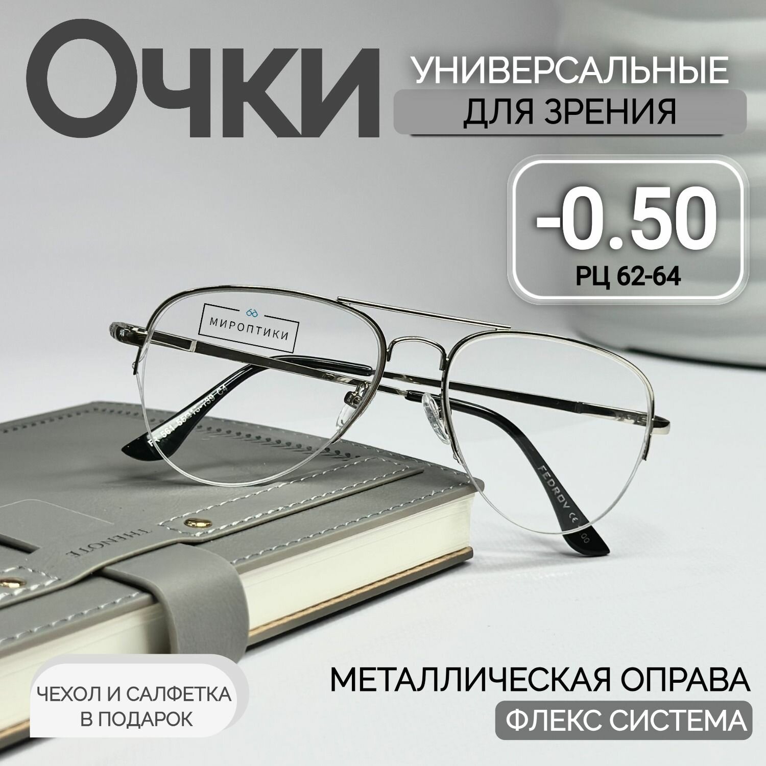 Очки для зрения Fedrov 561 C4 серебро, авиаторы, для дали с диоптриями -0.50 (чехол и салфетка в подарок) информация: