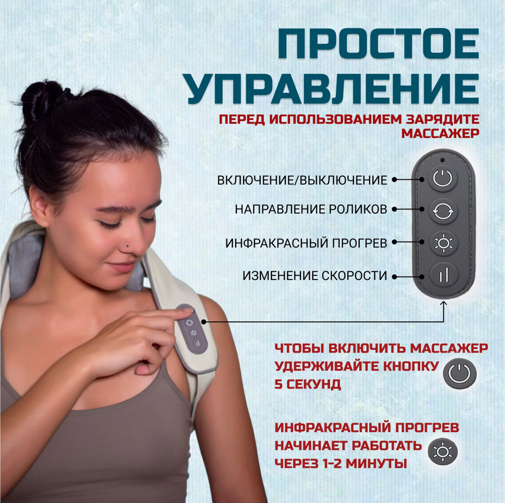 Массажер для шеи и плеч, спины, тела, беспроводной универсальный с инфракрасным подогревом информация: