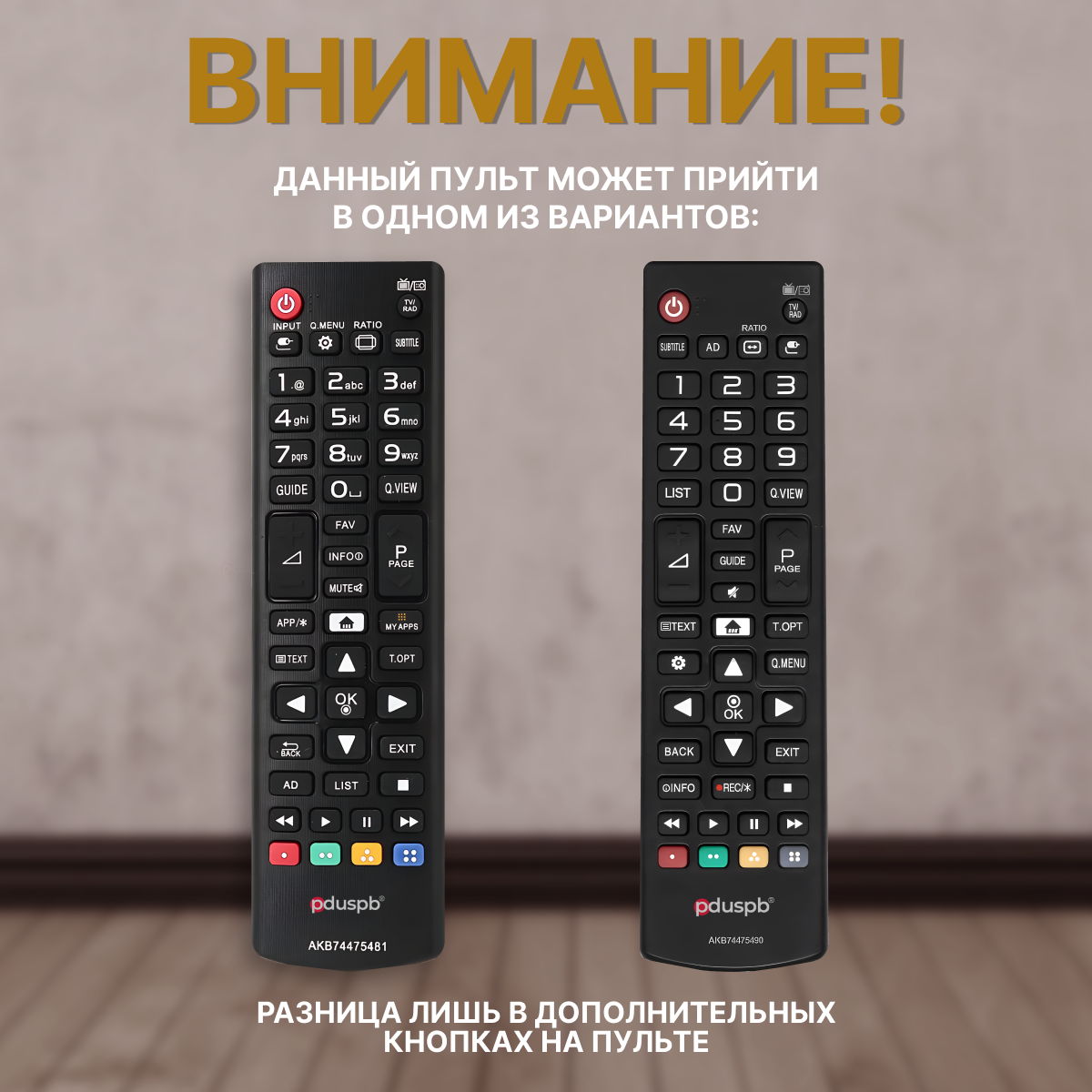 Дополнительная информация | Данная модель AKB74915330 совместима со всеми современными ЖК телевизорами LG. Все пульты в подобном классическом корпусе совместимы и взаимозаменяемы. Разница лишь в дополнительных кнопках на пульте. Подробный список поддерживаемого оборудования смотрите в «Назначении». Для Вашего удобства мы также добавили инструкции по подборке пультов. Пожалуйста, ознакомьтесь с ними перед покупкой. Можете задавать вопросы, мы незамедлительно поможем подобрать пульт для Вашего ТВ. |
