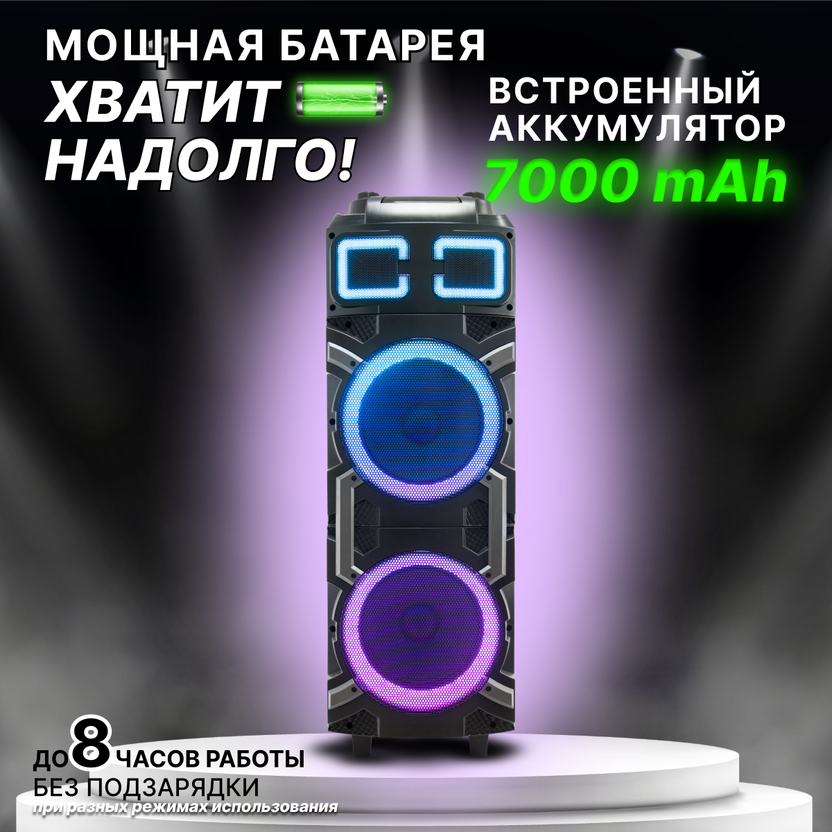 | Особенности | беспроводное подключение, караоке, пульт ДУ, регулировка тембра ВЧ, регулировка тембра НЧ |