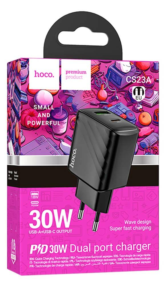 10 цен на СЗУ USB/Type-C Hoco CS23A (30W, QC3.0, PD) Черный