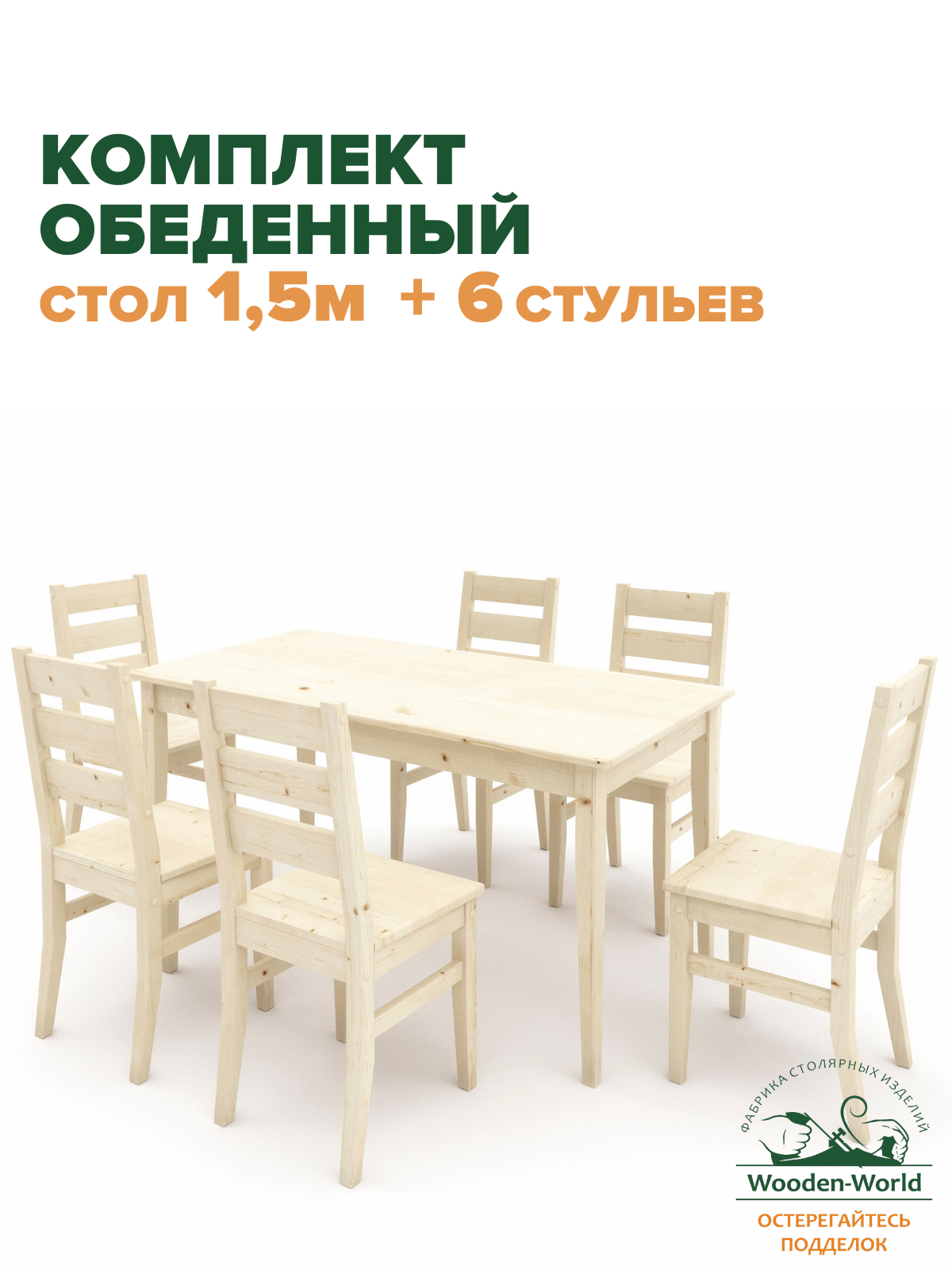 Комплект обеденной мебели из дерева (стол 1,5м + 6 стульев) КМО-04 (без покраски)