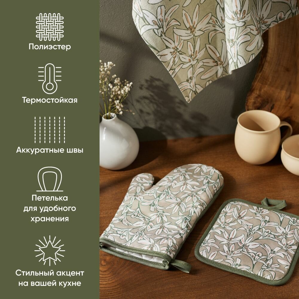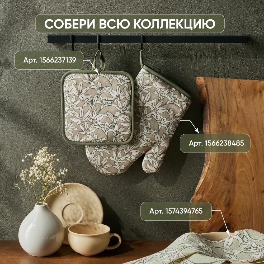 10 цен на Прихватка для кухни, рукавица кухонная PROVANCE Эвкалипт, 17х27 см, 100% полиэстер