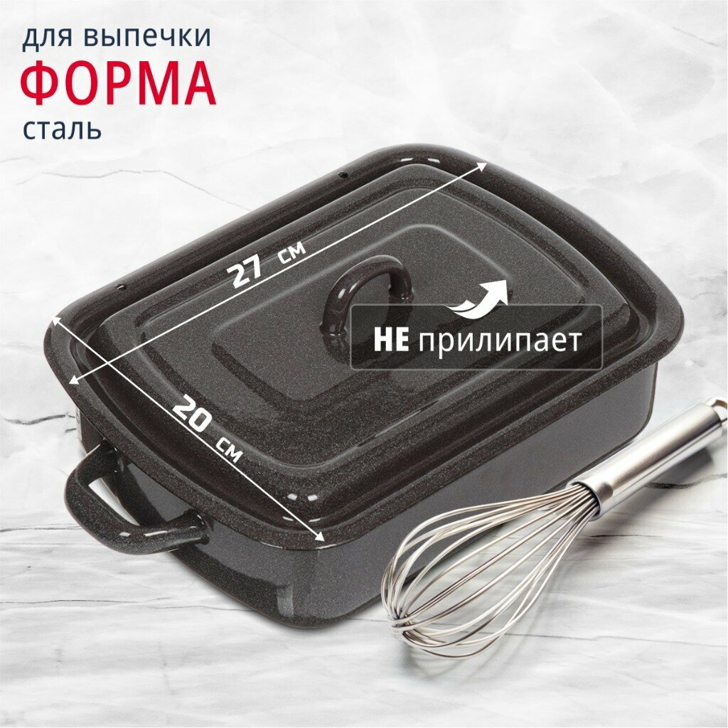 Отзывы на Форма для запекания сталь, 20х27 см, 3 л, прямоугольная, с крышкой, темно-коричневая, Рябчик, 43304-122