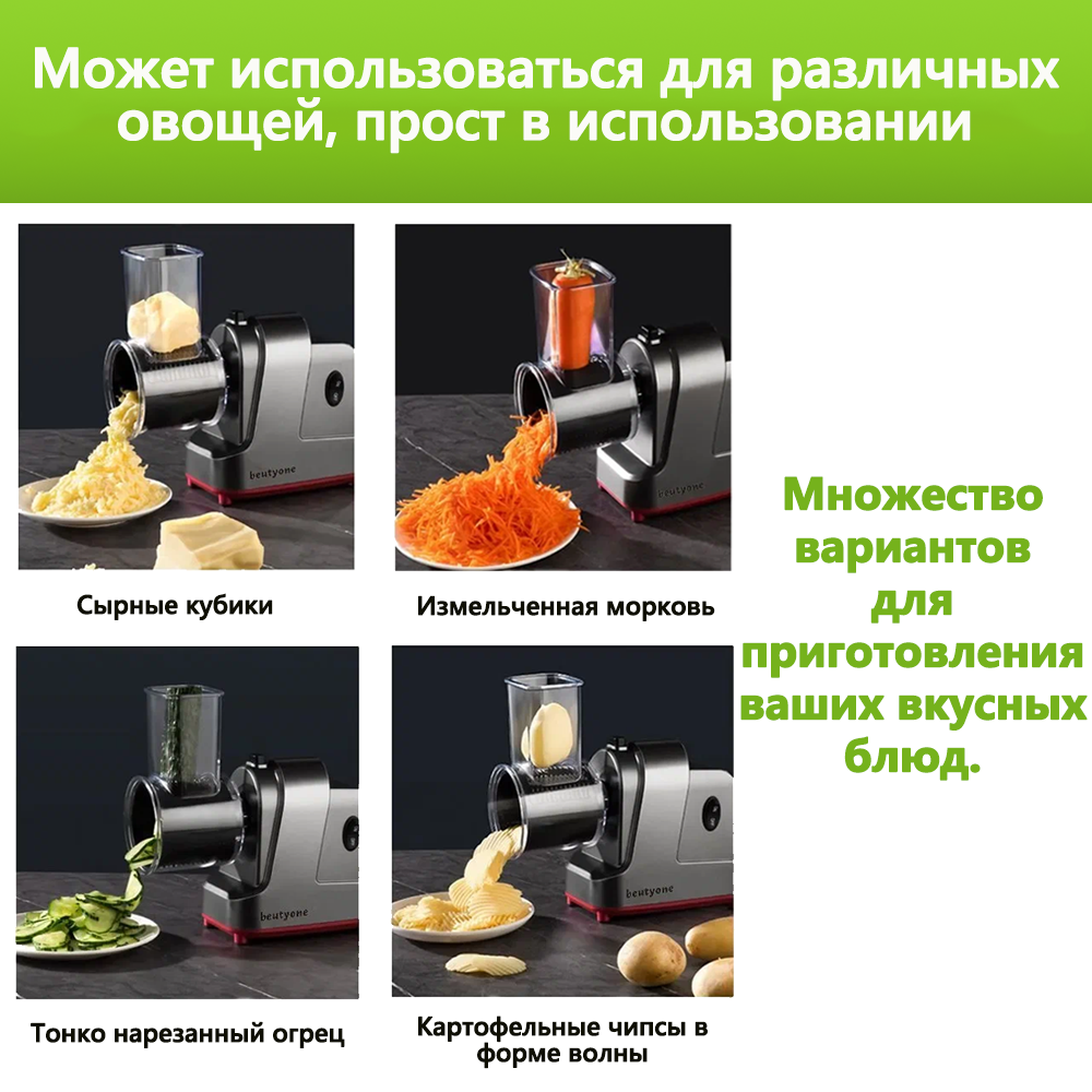 | Дополнительная информация | Профессиональная овощерезка, 500W, электрическая овощерезка beutyone с 5 бесплатными насадками |