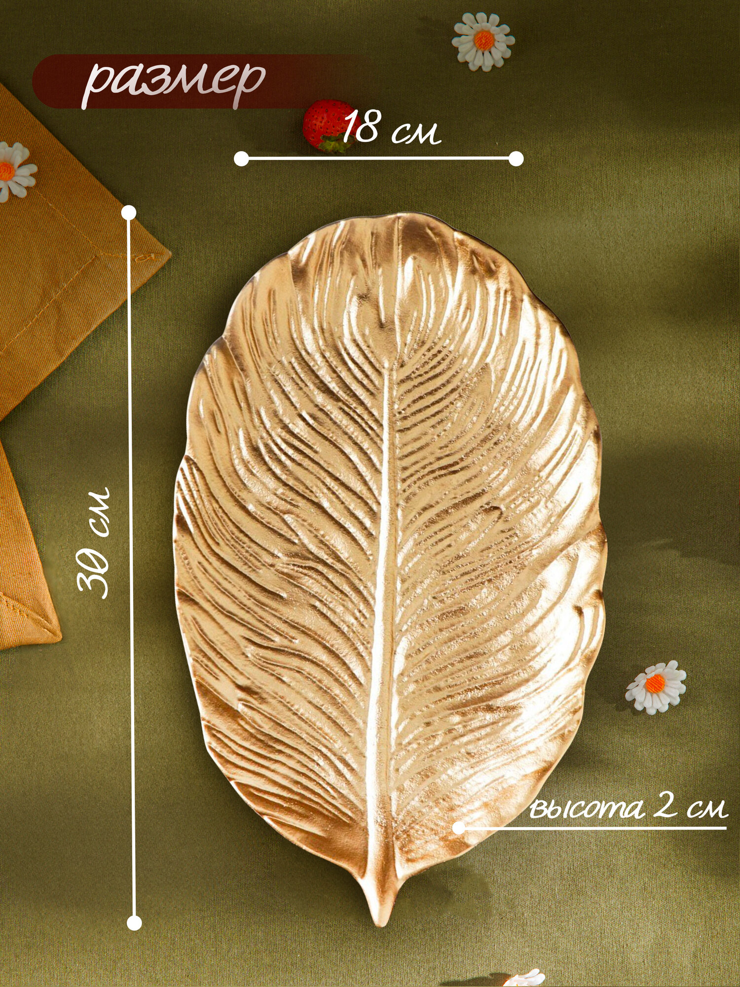 Блюдо для фруктов Доляна «Лист», 30×18×2 см, цвет золотой информация: