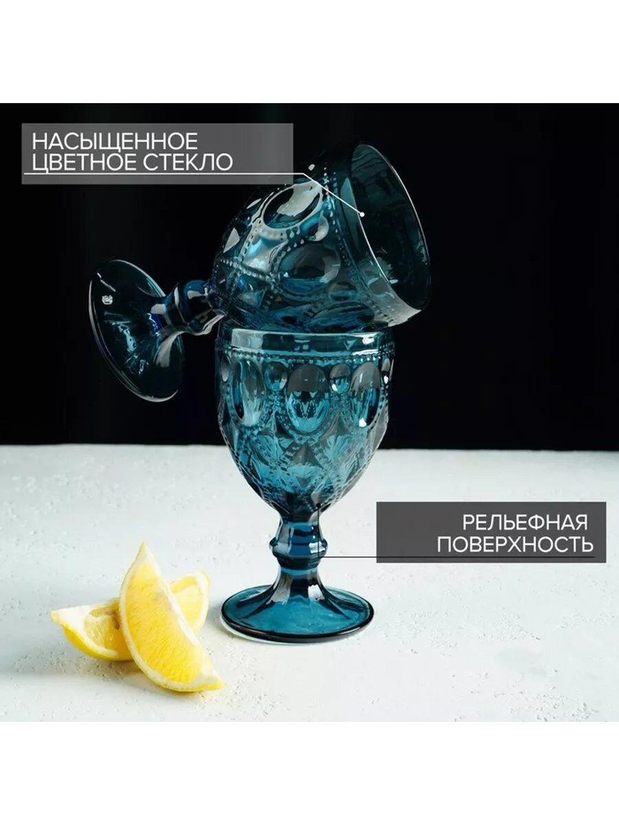 Бокал для вина Magistro "Круиз", 250 мл, 8x15,3 см, цвет синий, стеклянный фужер для напитков 643 ₽