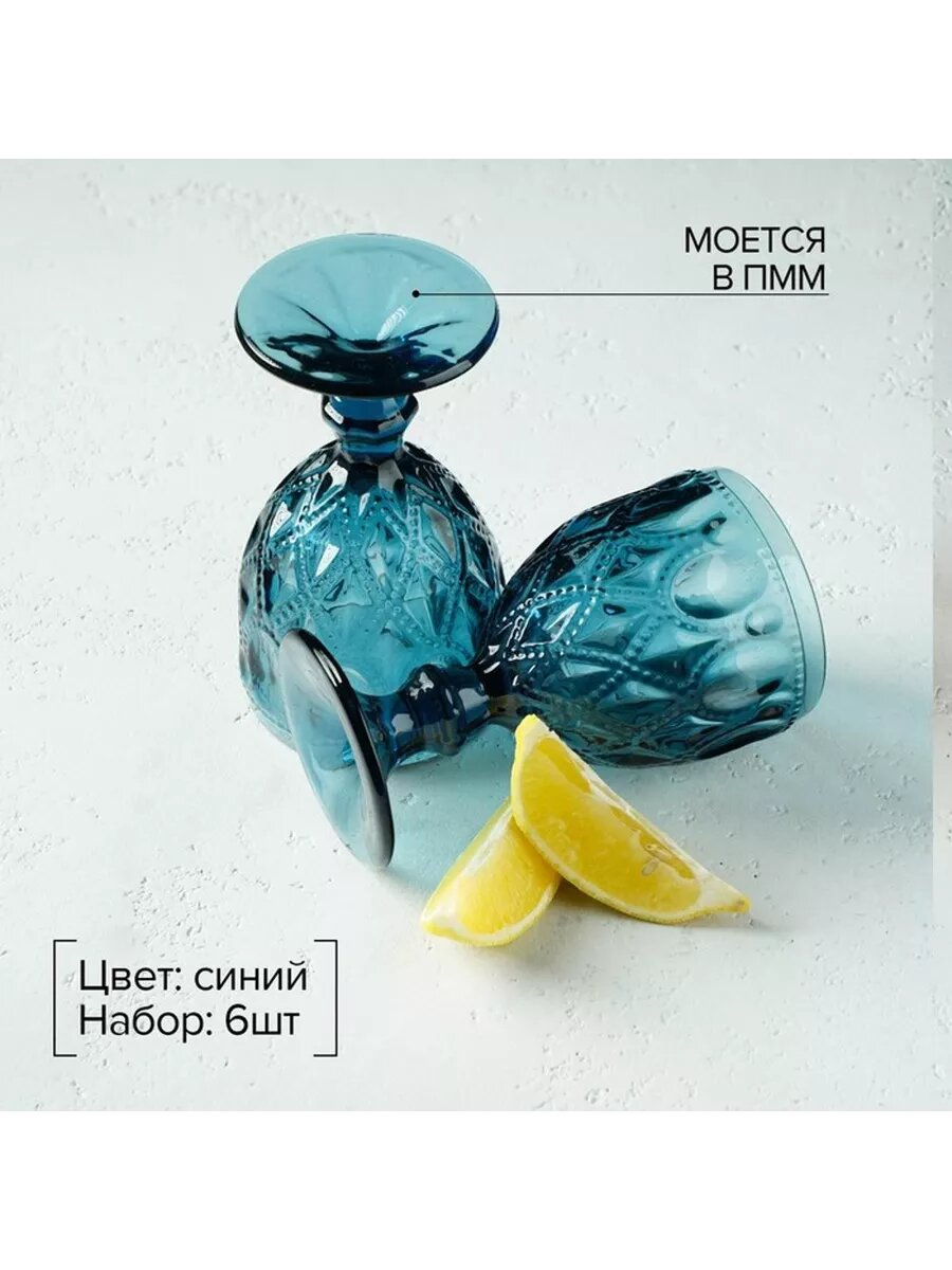 10 цен на Бокалы для вина Magistro «Варьете», 320 мл, 8,5×16 см, стекло, синие, набор 6 шт