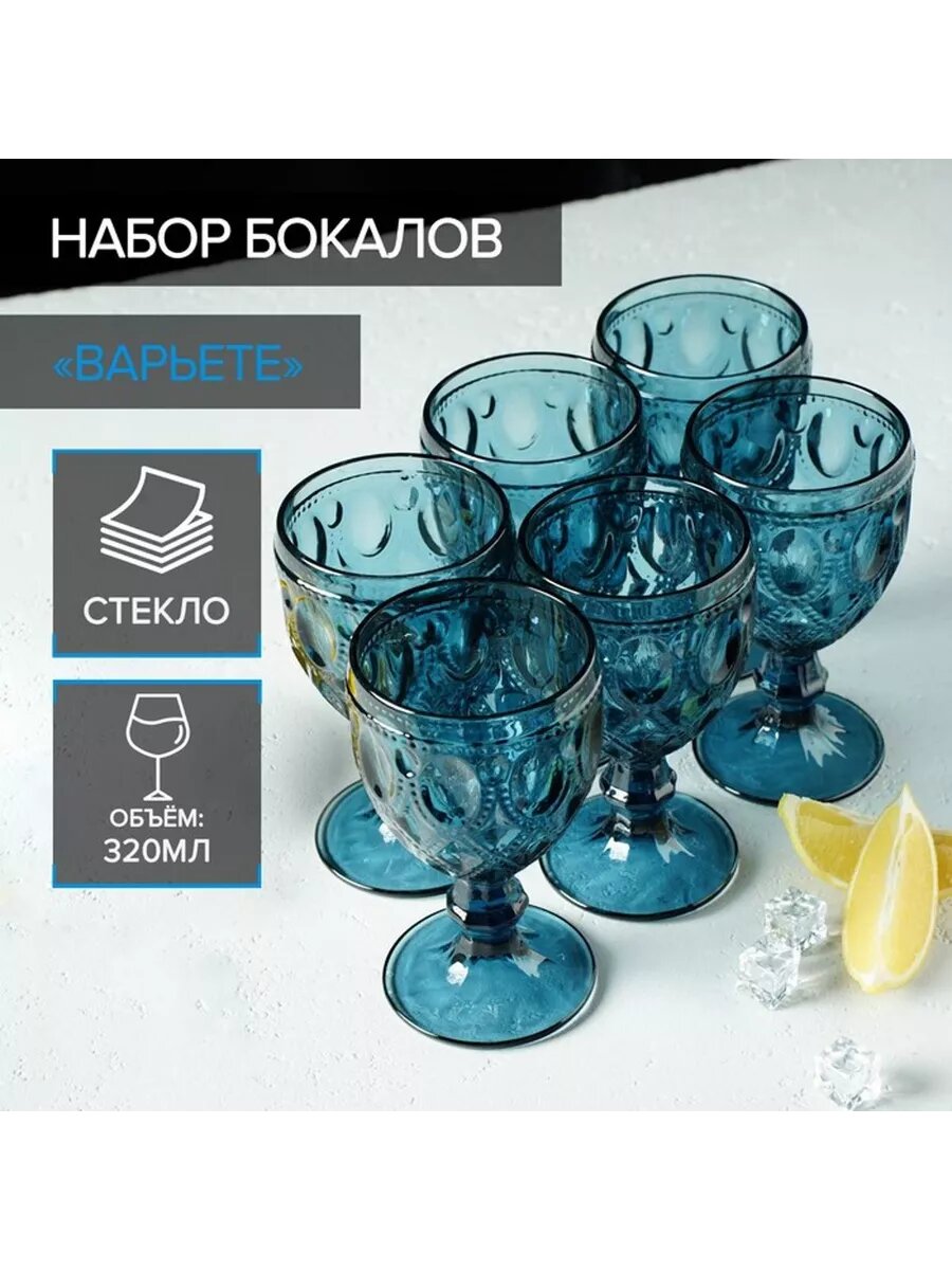 Бокалы для вина Magistro «Варьете», 320 мл, 8,5×16 см, стекло, синие, набор 6 шт информация: