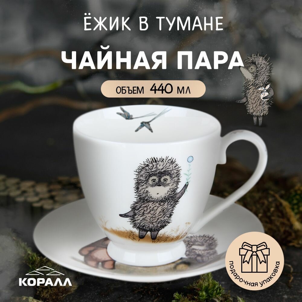 Чайная пара фарфор 440 мл Ежик в тумане в подарочной упаковке