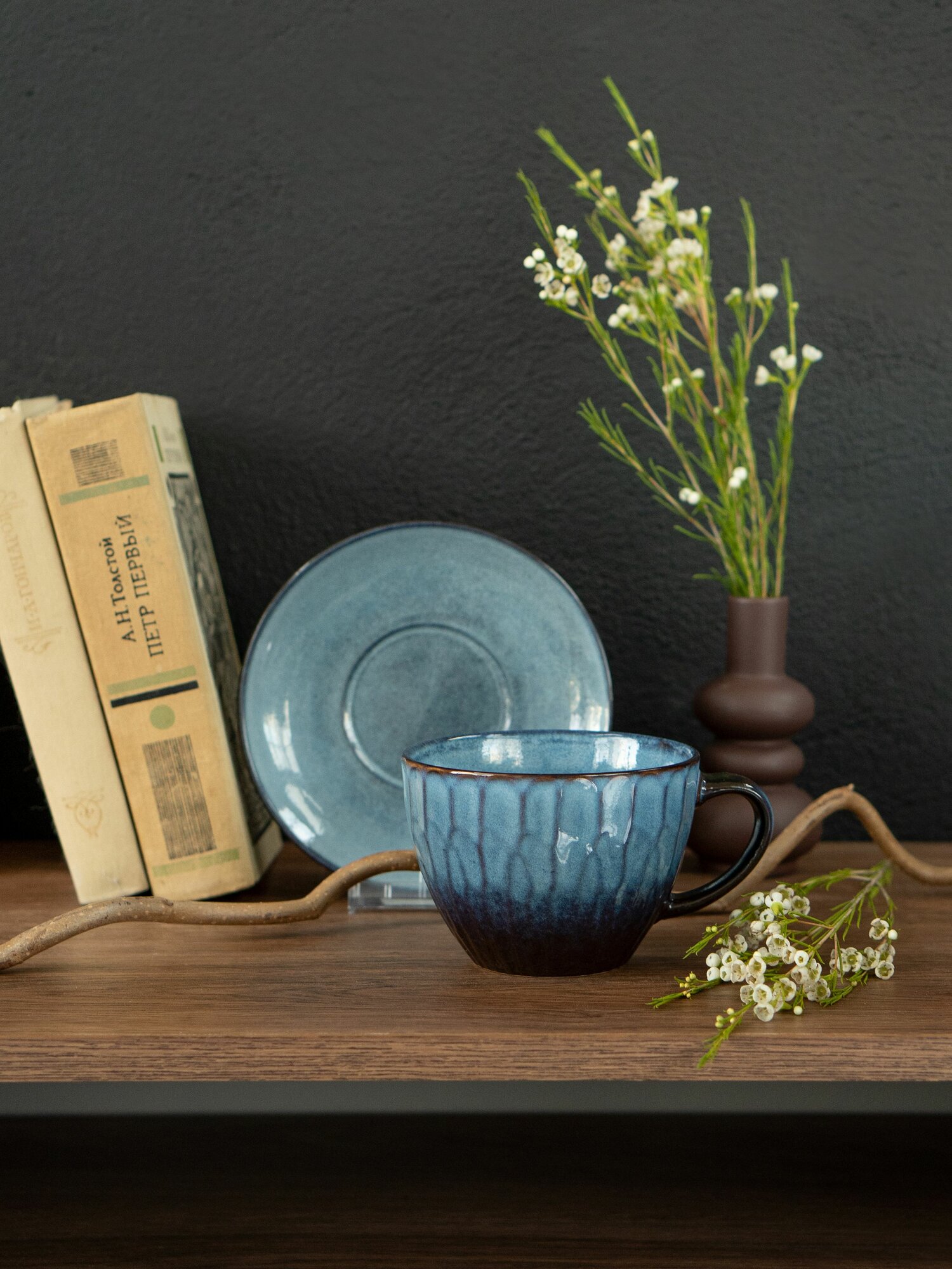 Чайная пара керамика 450мл цвет голубой градиент. Чашка с блюдцем набор чайный на одну персону 1 290 ₽