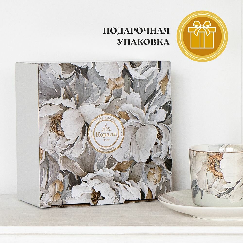10 цен на Чайная пара 230мл в подарочной упаковке "Light flower" фарфор. Чайный набор на 1 персону/ Чашка с блюдцем в подарок