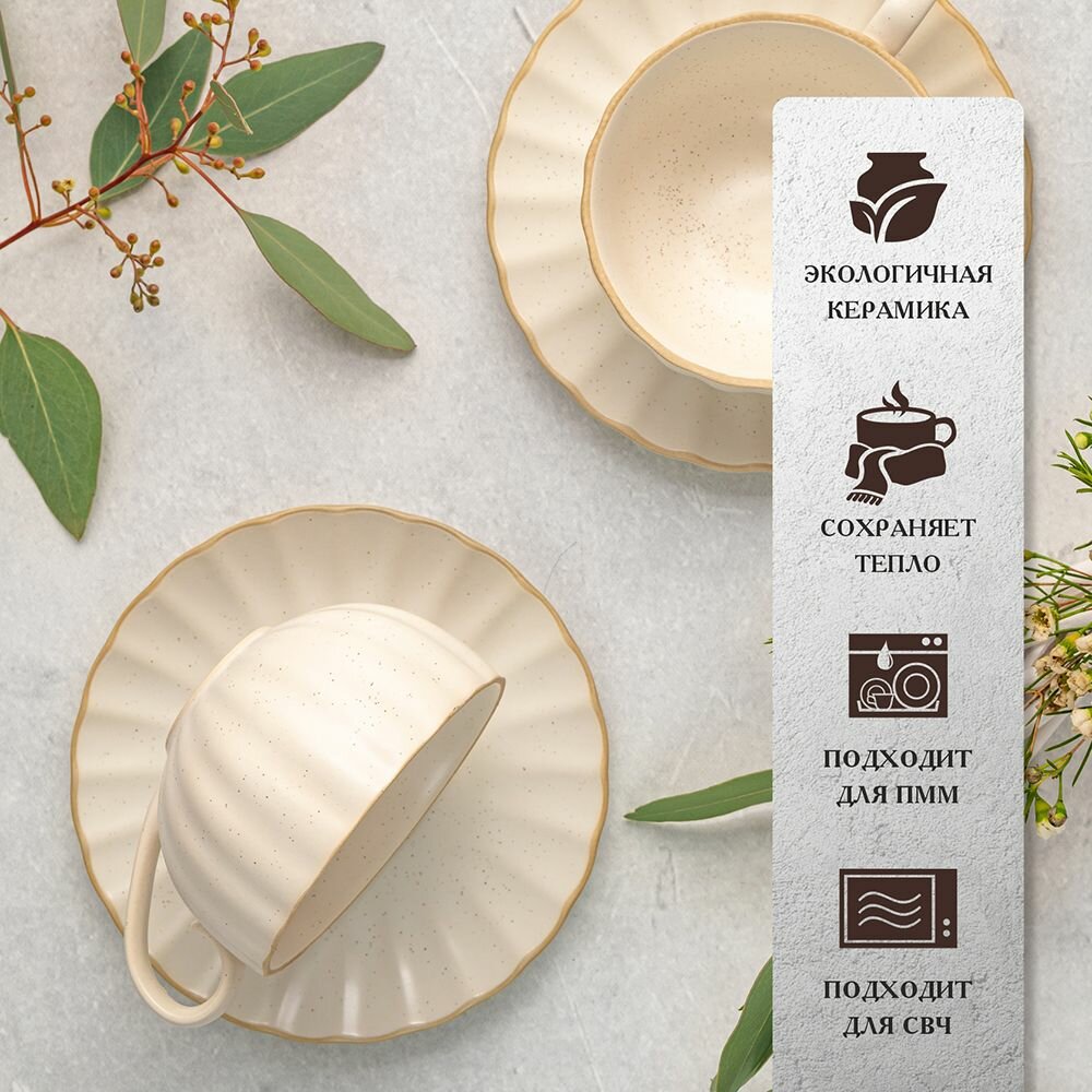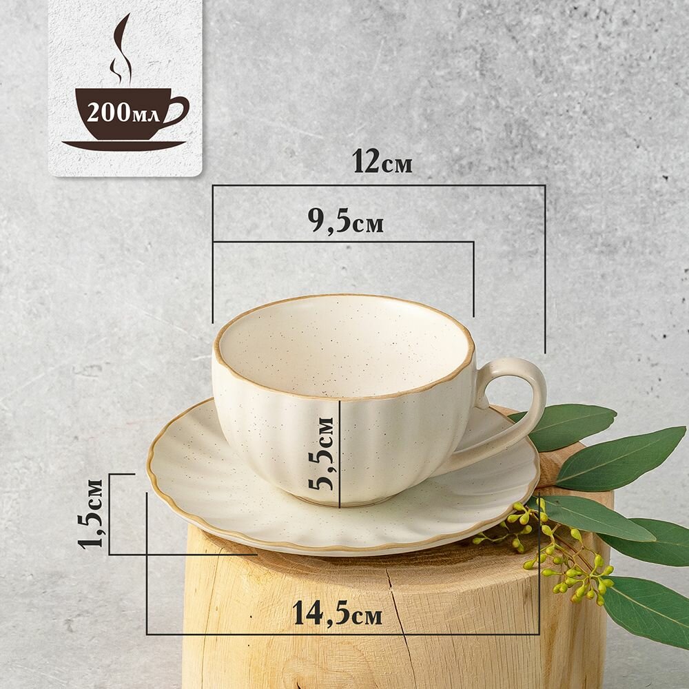 Чайная пара подарочная керамика 200 мл Бежевый чашка с блюдцем набор чайный кофейный информация: