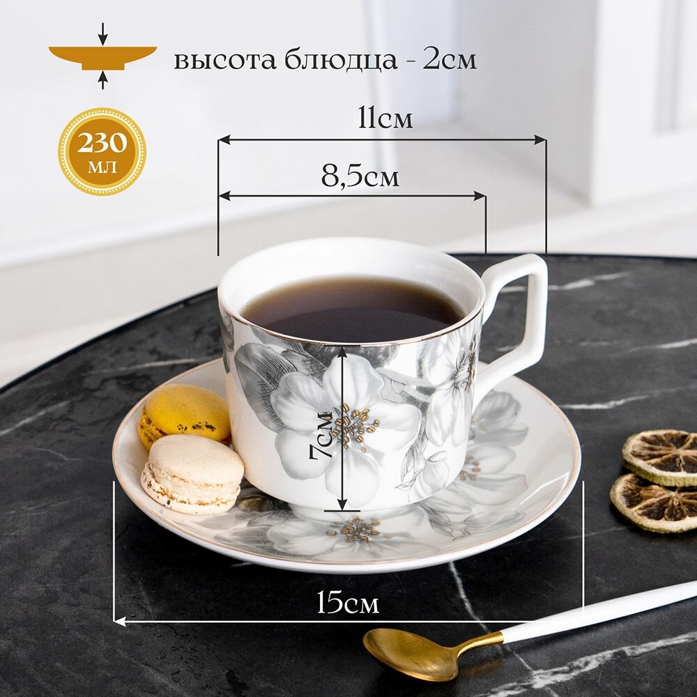 10 цен на Чайная пара 230 мл в подарочной упаковке "Apple bloom" фарфор. Чайный набор на 1 персону/ Чашка с блюдцем в подарок