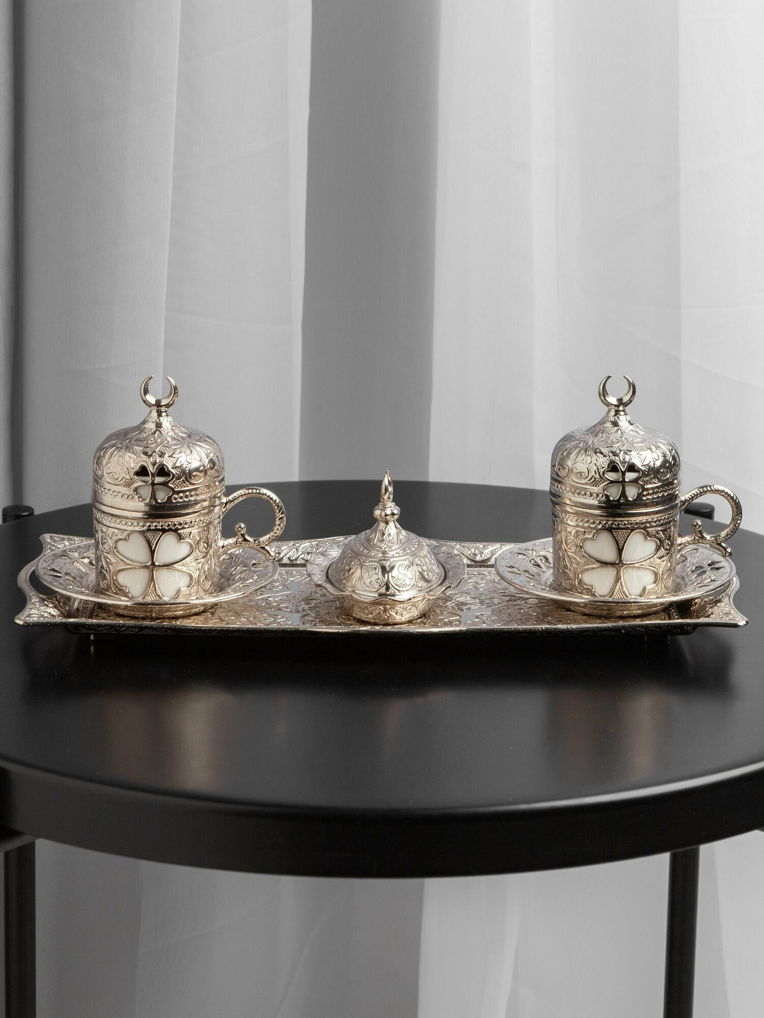 Кофейный набор турецкий от бренда SENA серебро на 2 персоны информация: