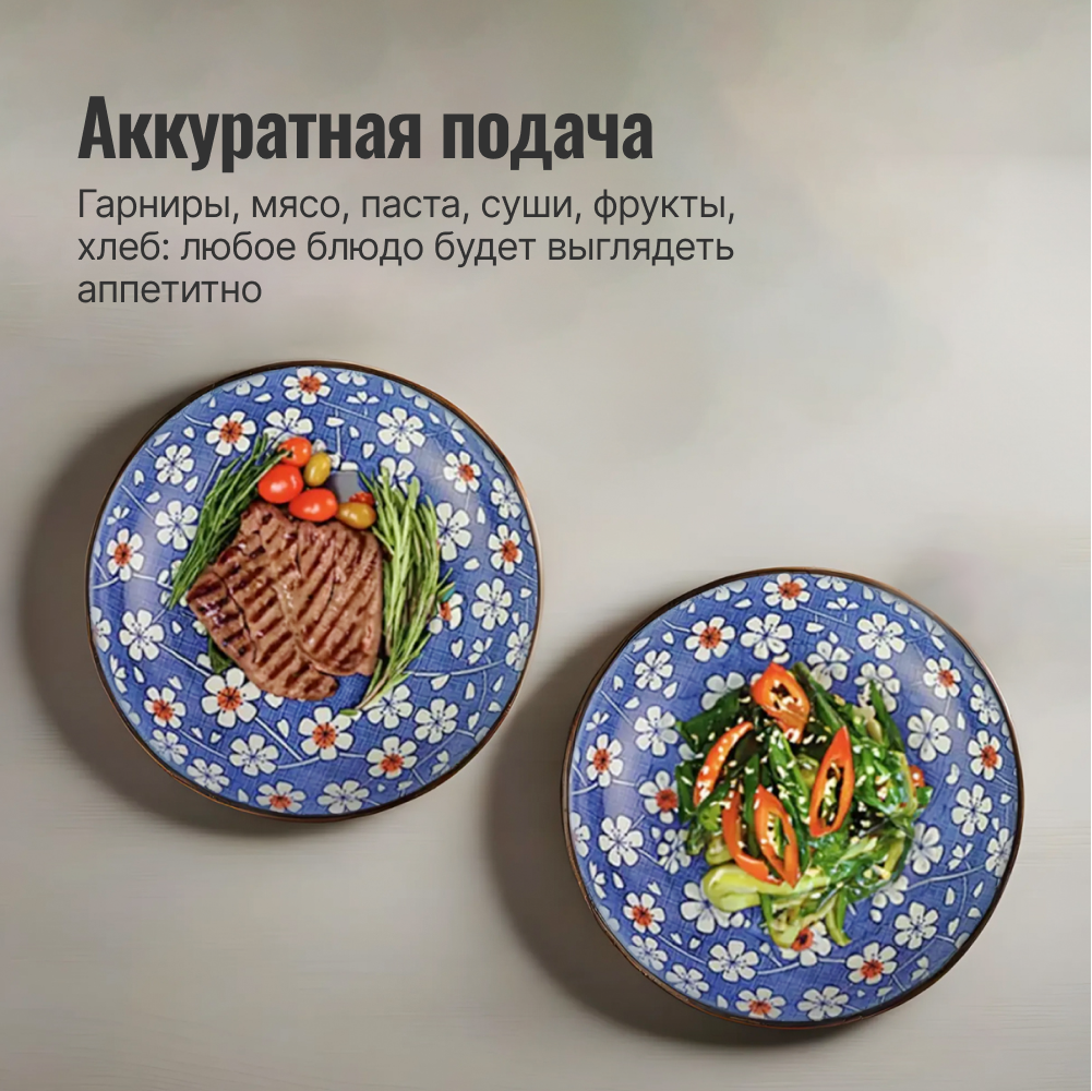 Керамическая тарелка Homium, Japanese Collection в японском стиле, обеденная тарелка с рисунком, голубой, D20см, набор 2шт.