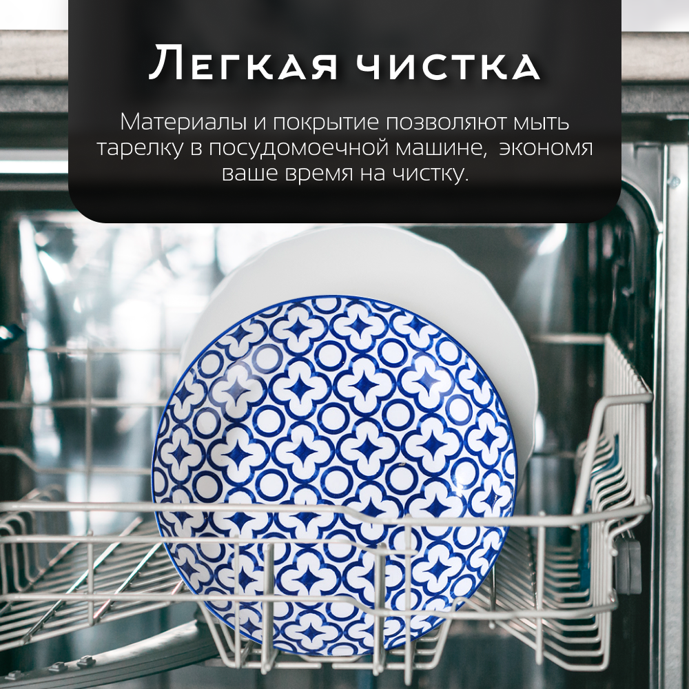 Тарелка столовая керамическая для сервировки стола Homium, Japanese Collection, Очарование, цвет белый/синий, D20см 849 ₽