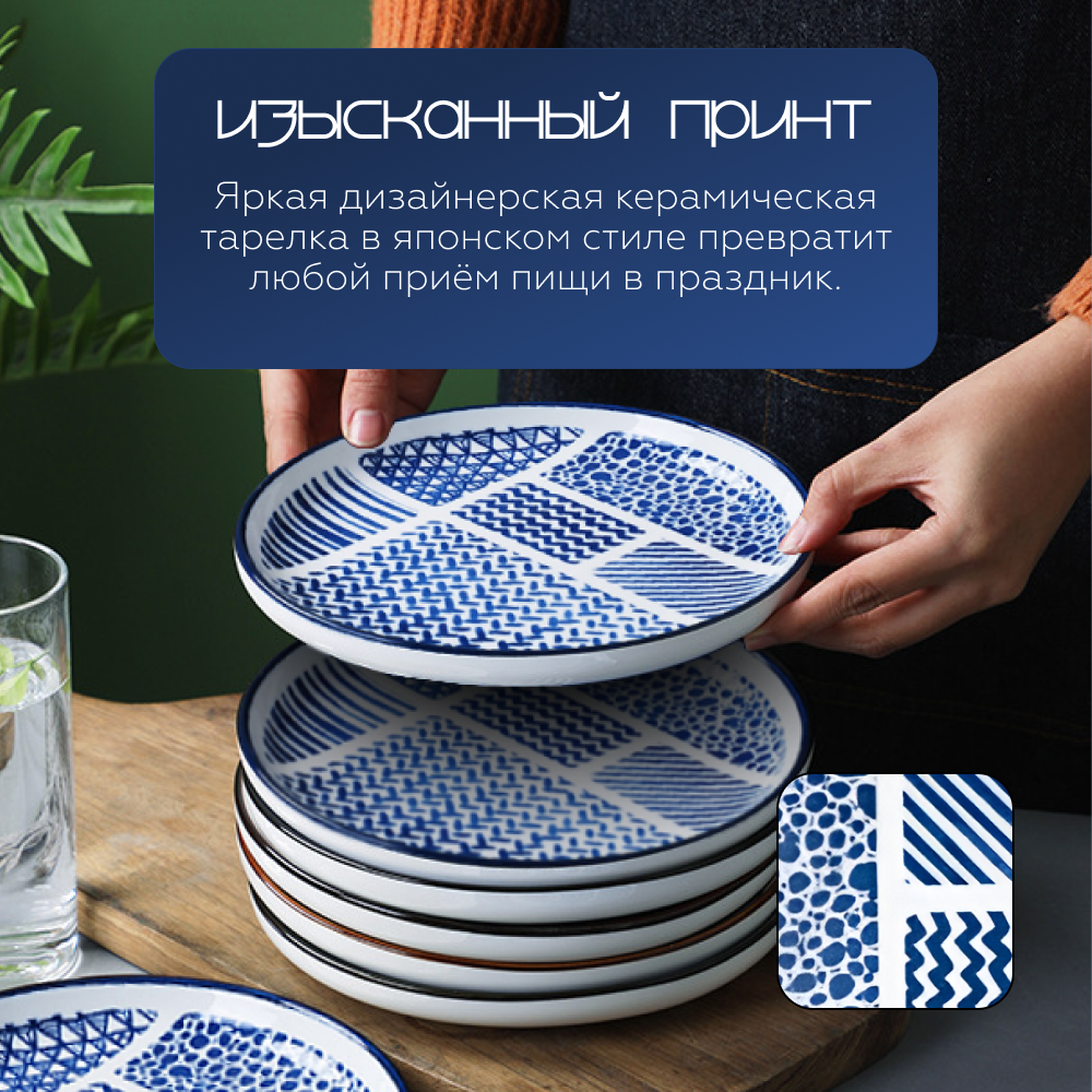 10 цен на Тарелка из керамики для вторых блюд Homium, Japanese Collection, Top, D20.5см, цвет голубой