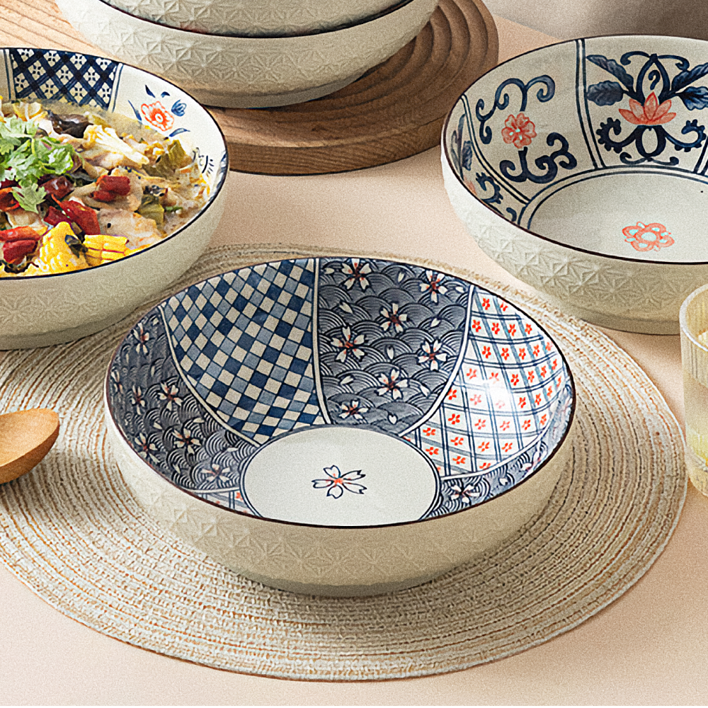 Набор тарелок для вторых блюд и салатов Homium, Japanese Collection, Очарование, глубокая, D20см, цвет белый/синий 4 160 ₽