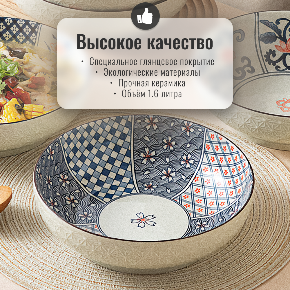 Глубокая керамическая тарелка салатник для сервировки стола и подачи блюд, столовая посуда для кухни, 23,5 см, 1.6л 1 200 ₽