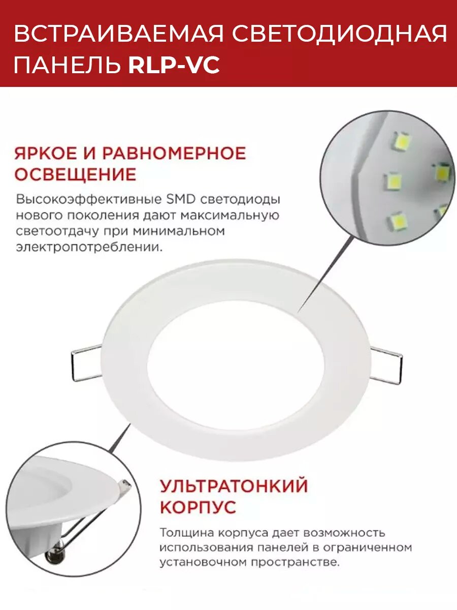 | Дополнительная информация | Светильник встраиваемый In Home RLP-VC 12Вт 230В 4000К 960Лм IP40 145мм белый |