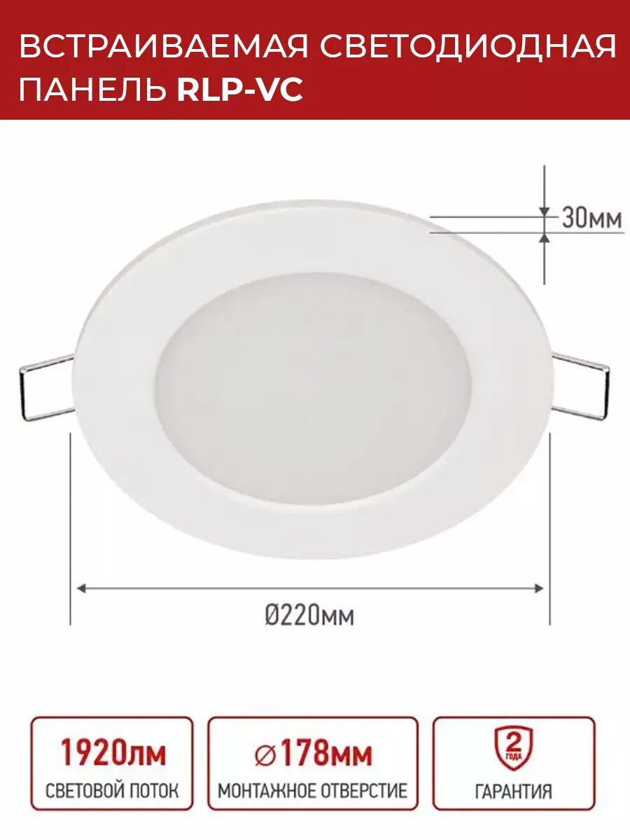 4690612034980 IN Home Панель сд встраиваемая круглая Rlp-vc 24Вт 230В 6500К 1920Лм 220мм белая IP40 . 574 ₽