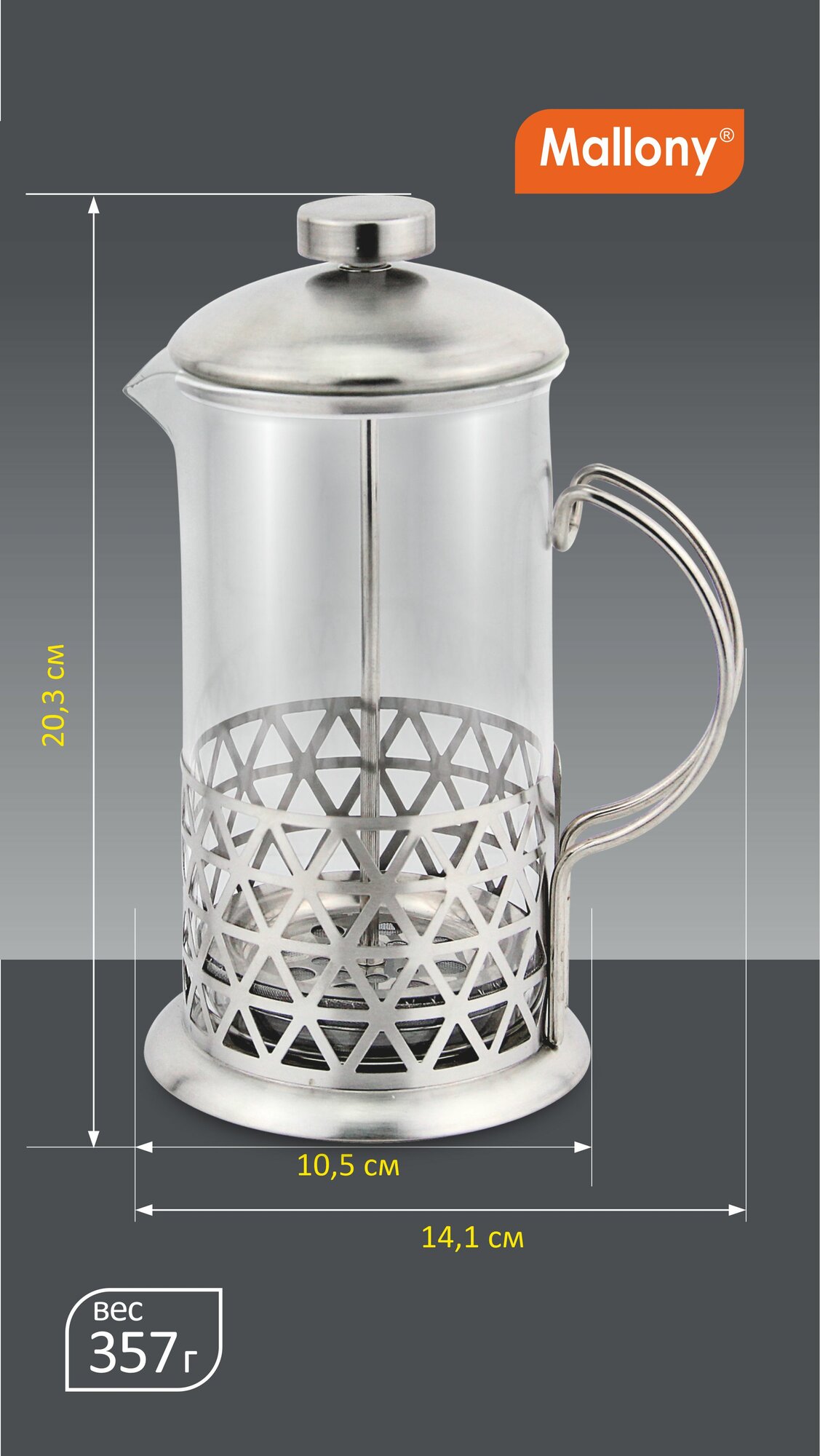 Френч-пресс Mallony Rombo (0.6 л) серебристый информация: