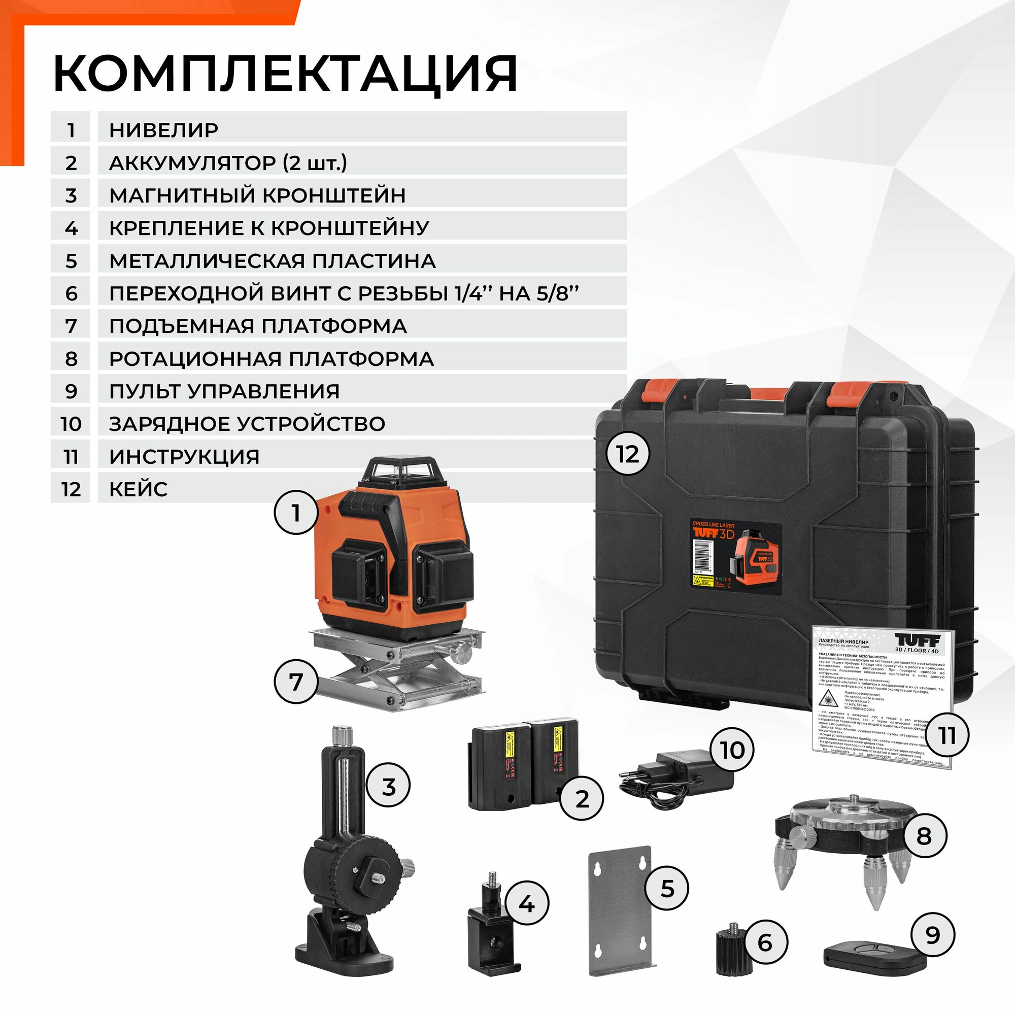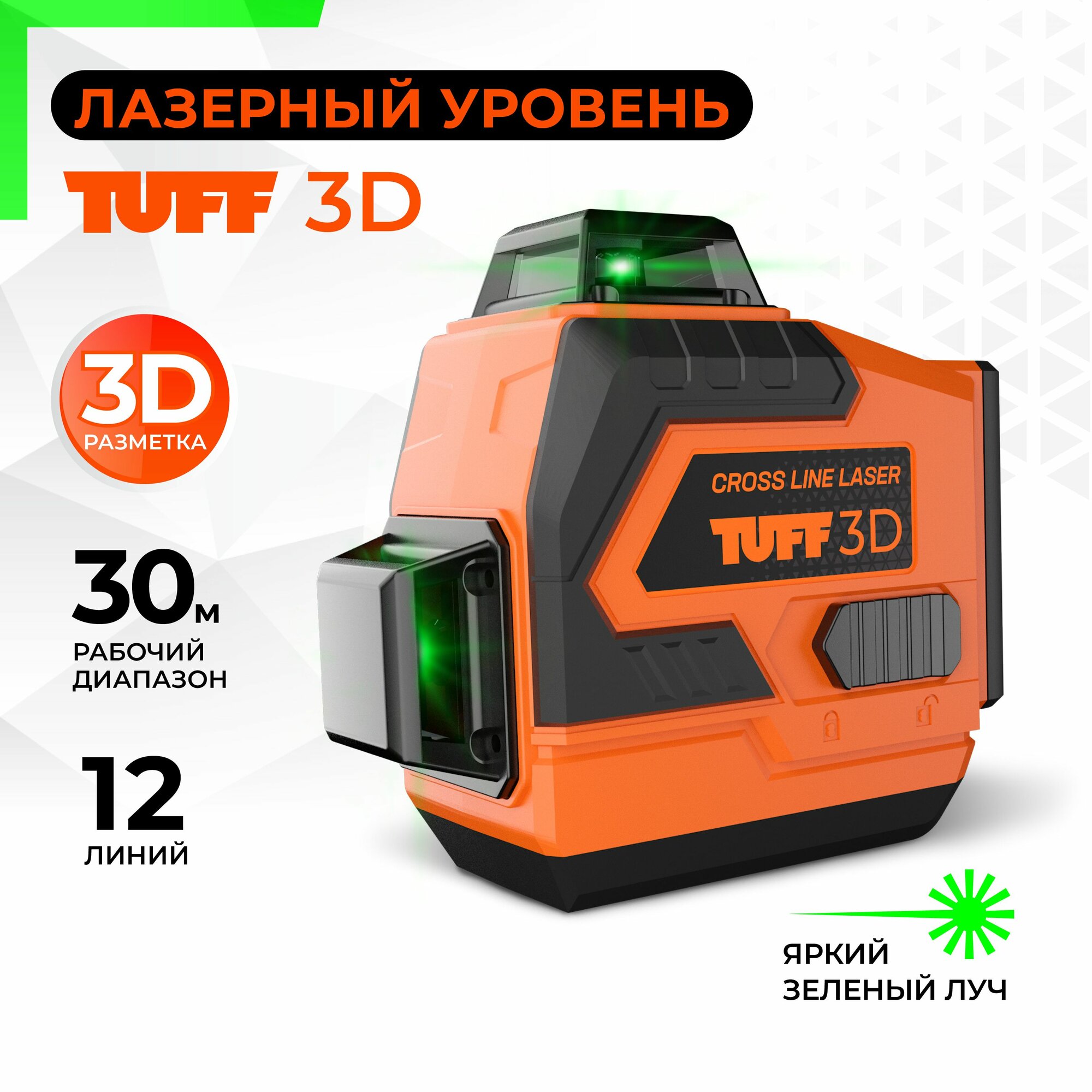Лазерный уровень / нивелир 3 луча 12 линий 360 градусов TUFF 3D информация:
