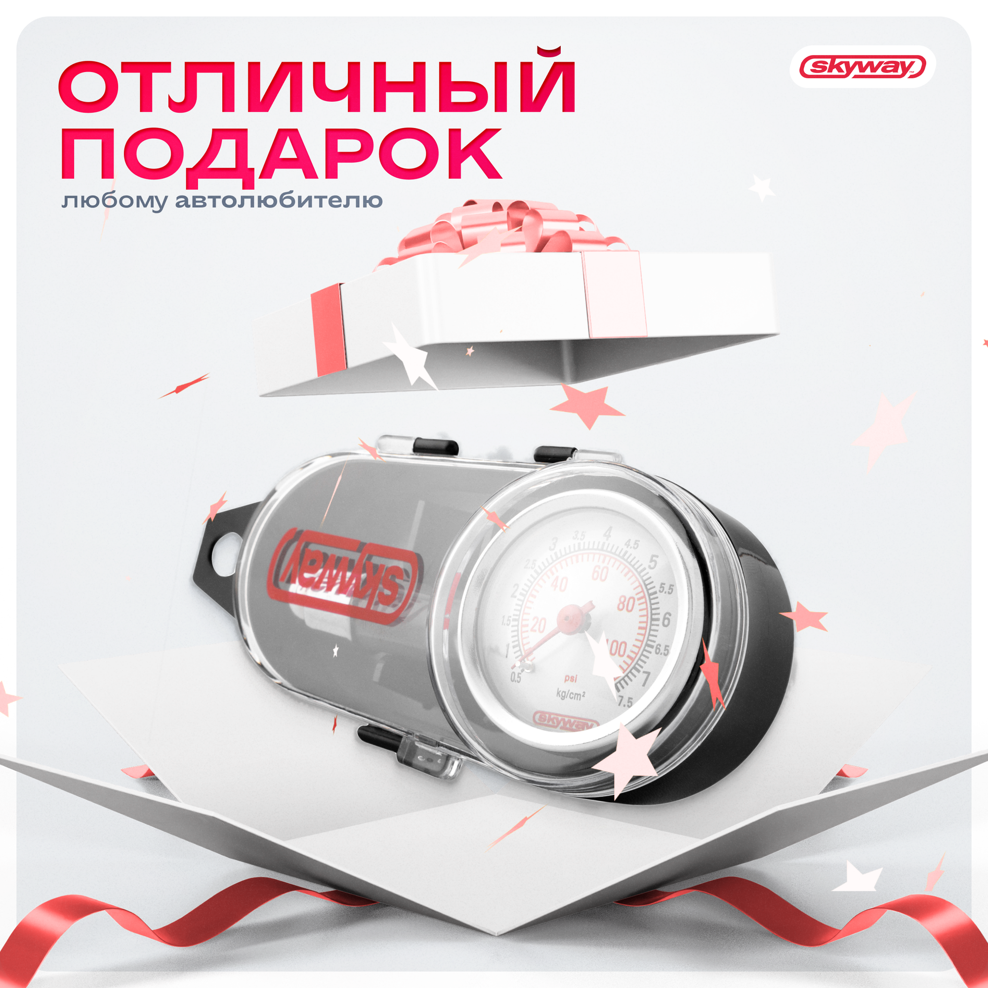 Манометр а/м шинный (в мет. корп. 7,5 АТМ в пласт. футл) SKYWAY 479 ₽