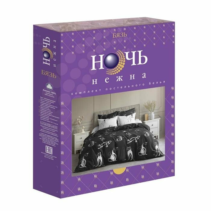 Постельное белье Ночь Нежна Багира, бязь, 2 спальное с европростыней, наволочки 50х70, 100% хлопок 2 160 ₽