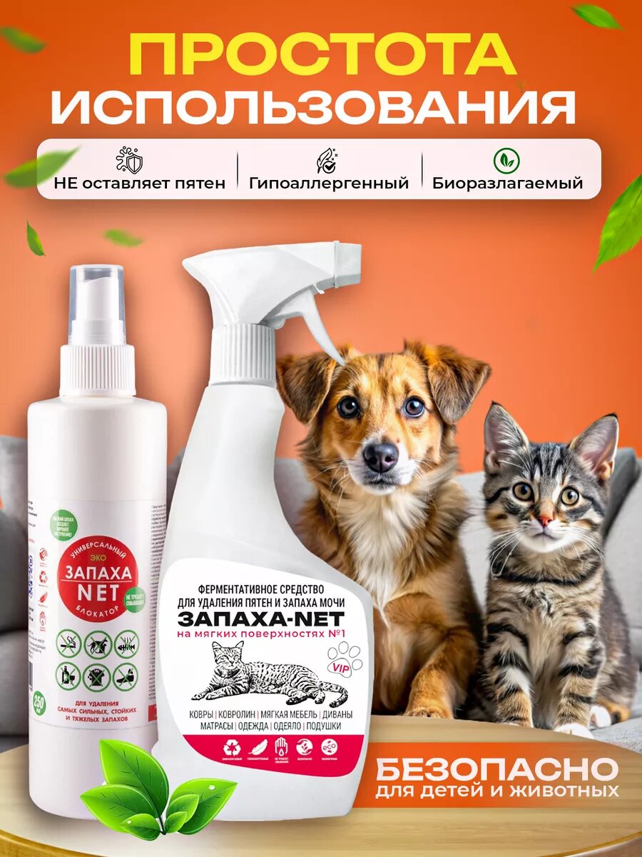 Нейтрализатор запаха. Набор от запаха кошачьей мочи для мебели.ЗАПАХА-NET500+250мл. Быстро действующий. Блокатор запаха.Максимально эффективный. Подходит для удаления запаха мочи любых животных. Биоразлагаем. Гипоаллергенный. информация: