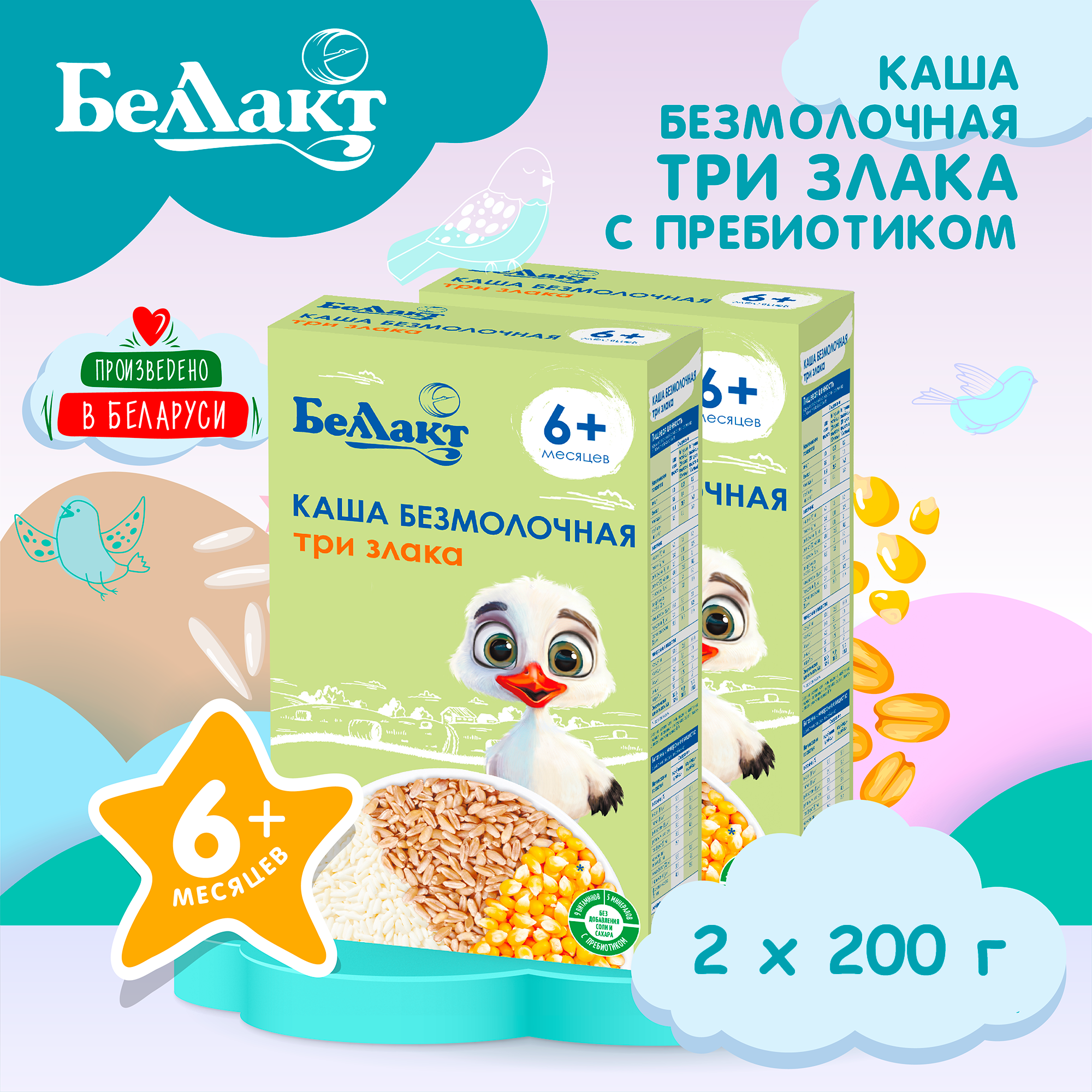 Беллакт Каша безмолочная зерновая из трех злаков с пребиотиком, 200гр Х 2шт информация: