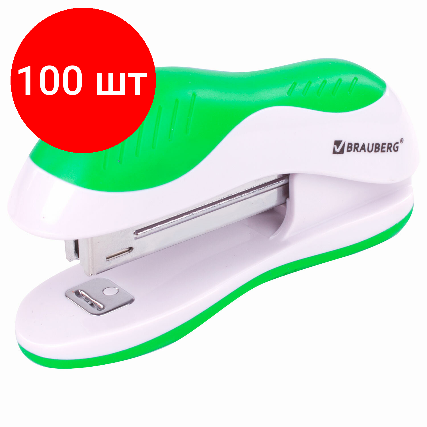 10 цен на Комплект 100 шт, Степлер №10 BRAUBERG "JET", до 15 листов, эргономичный, бело-зеленый, 228580