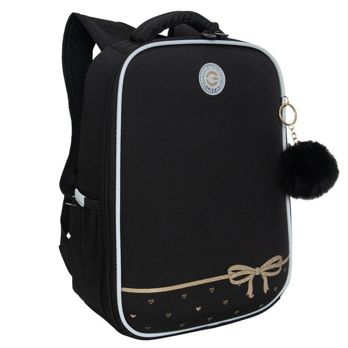 Ранец каркасный, 37 х 26 х 16 см, Grizzly, + брелок, чёрный/золотой 10 215 ₽