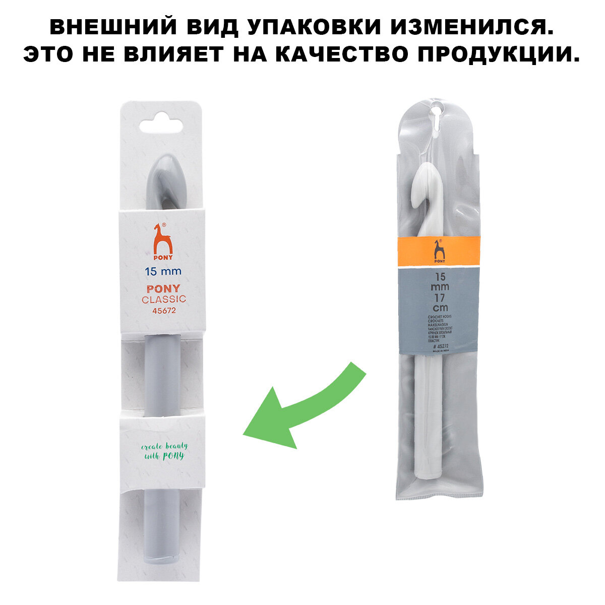 Крючок для вязания 15мм*17см, пластик PONY, 45272 информация: