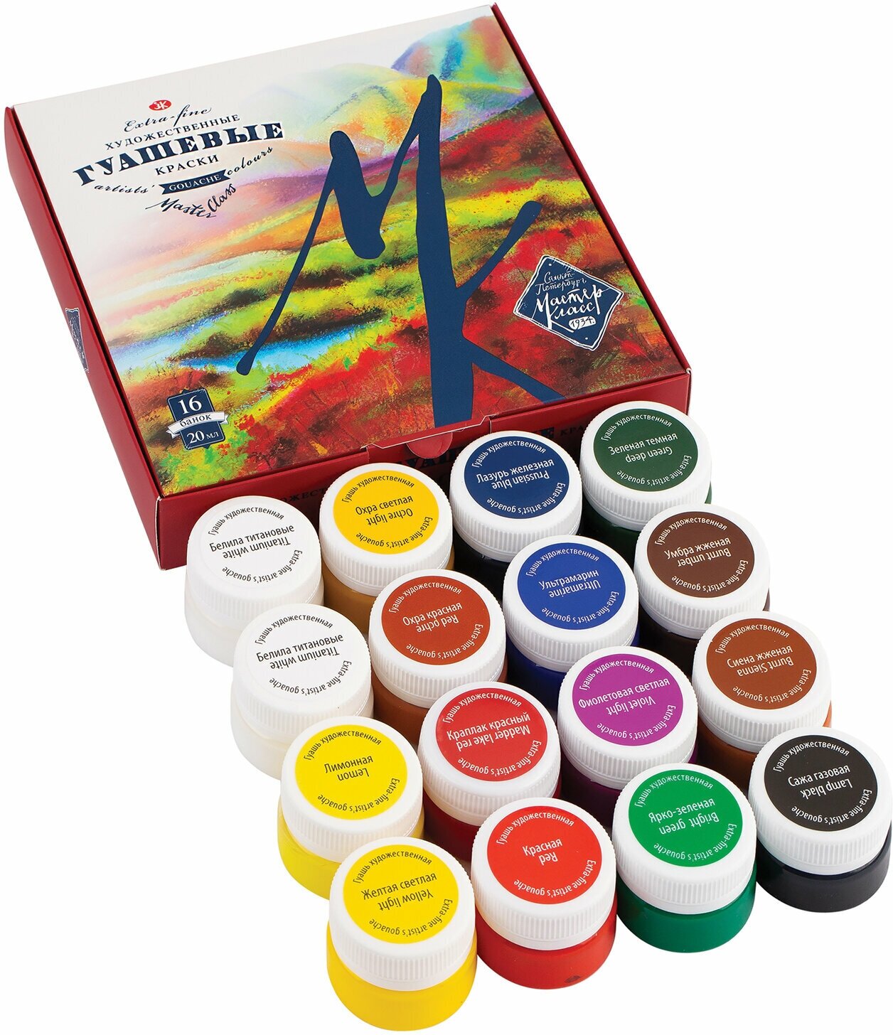 Гуашь художественная Мастер-класс, 16 цветов по 20 мл, 1741092 информация: