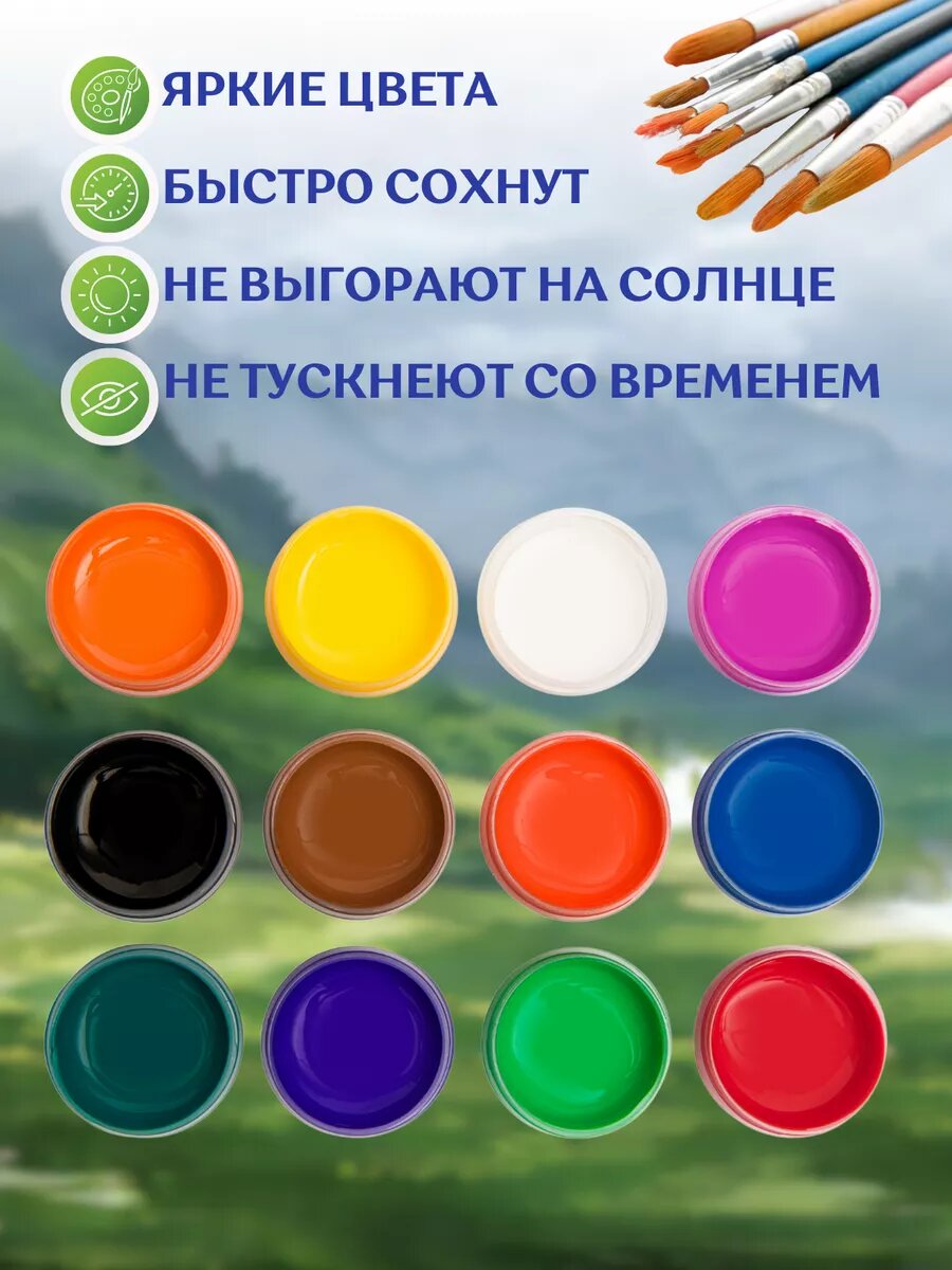 10 цен на Набор акриловых красок "Луч", глянцевые, для творчества, 12 цветов по 20мл